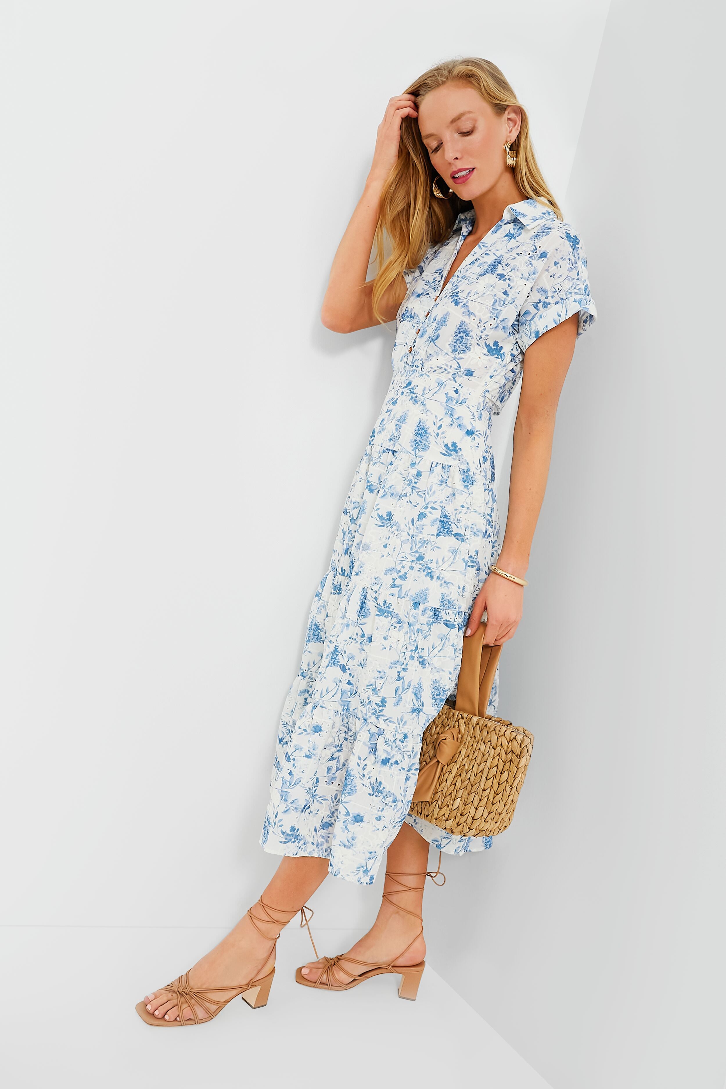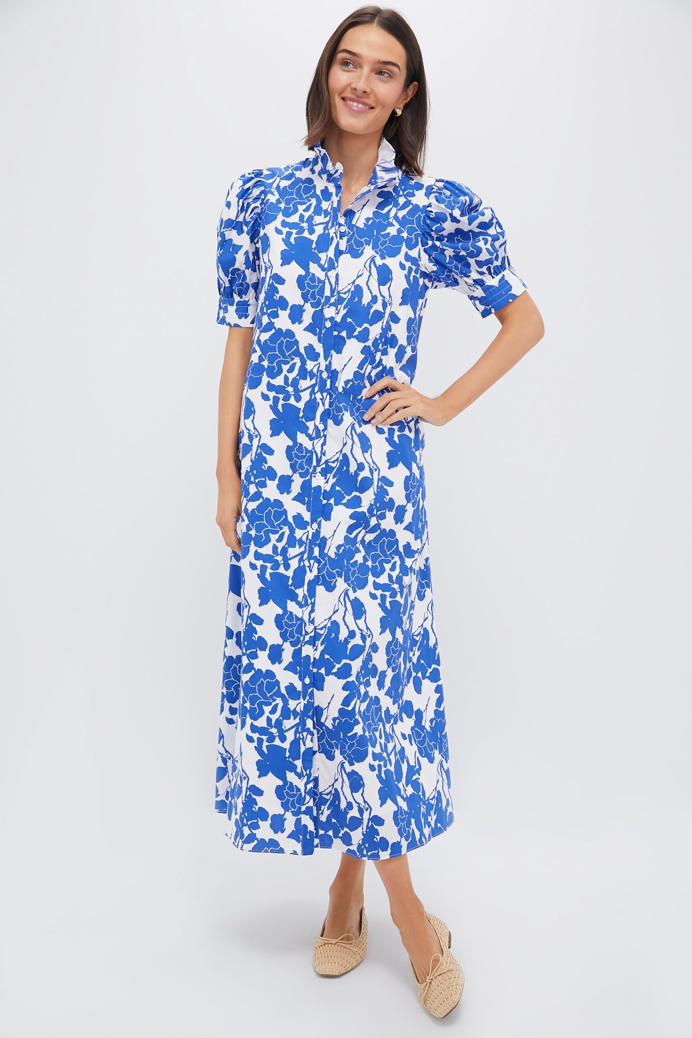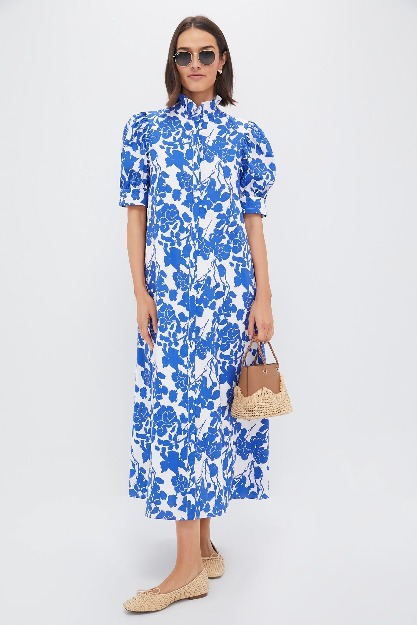 Blue Floral Ruffle Collar Louisa Maxi Dress