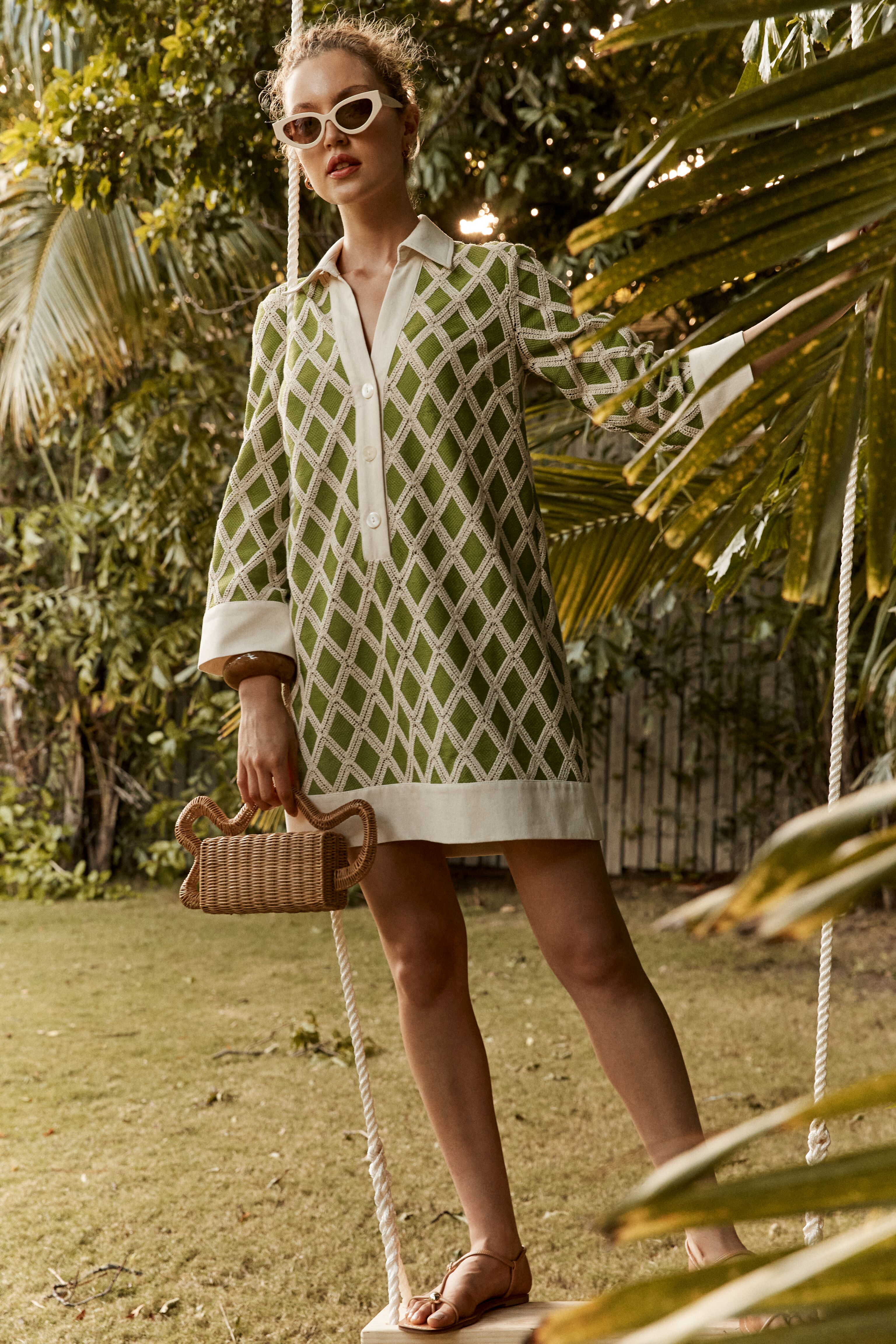 Kelly Green Crochet Collier Dress