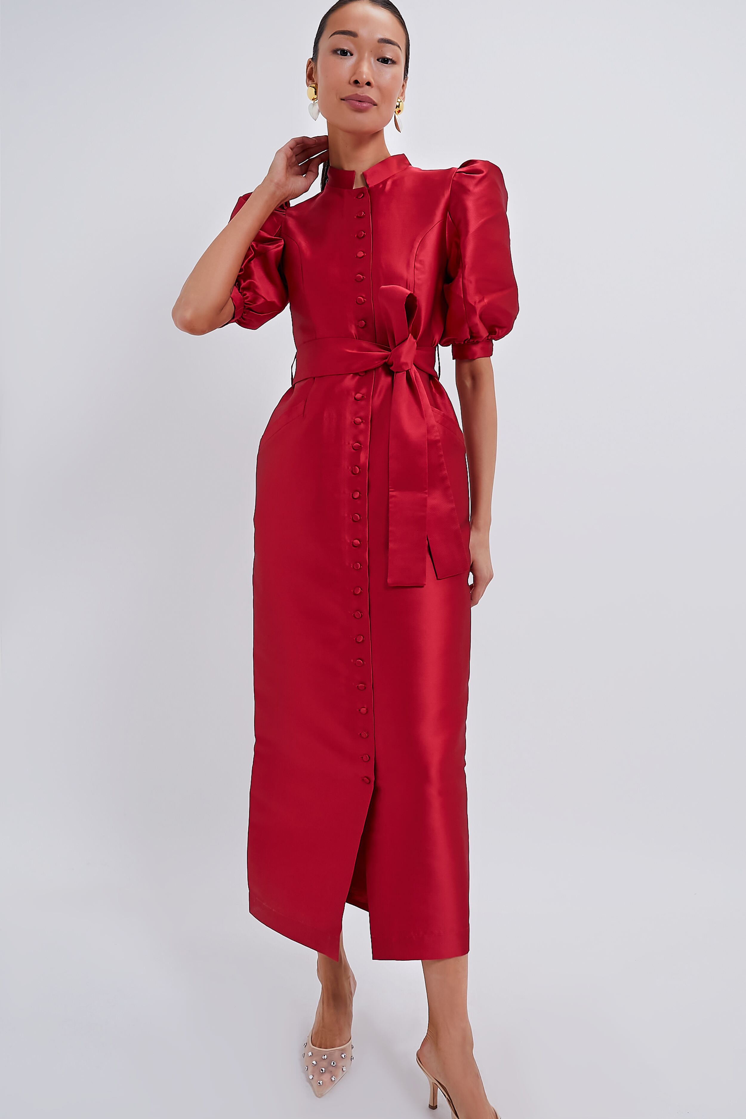 Red Rose Viri Taffeta Faille Dress