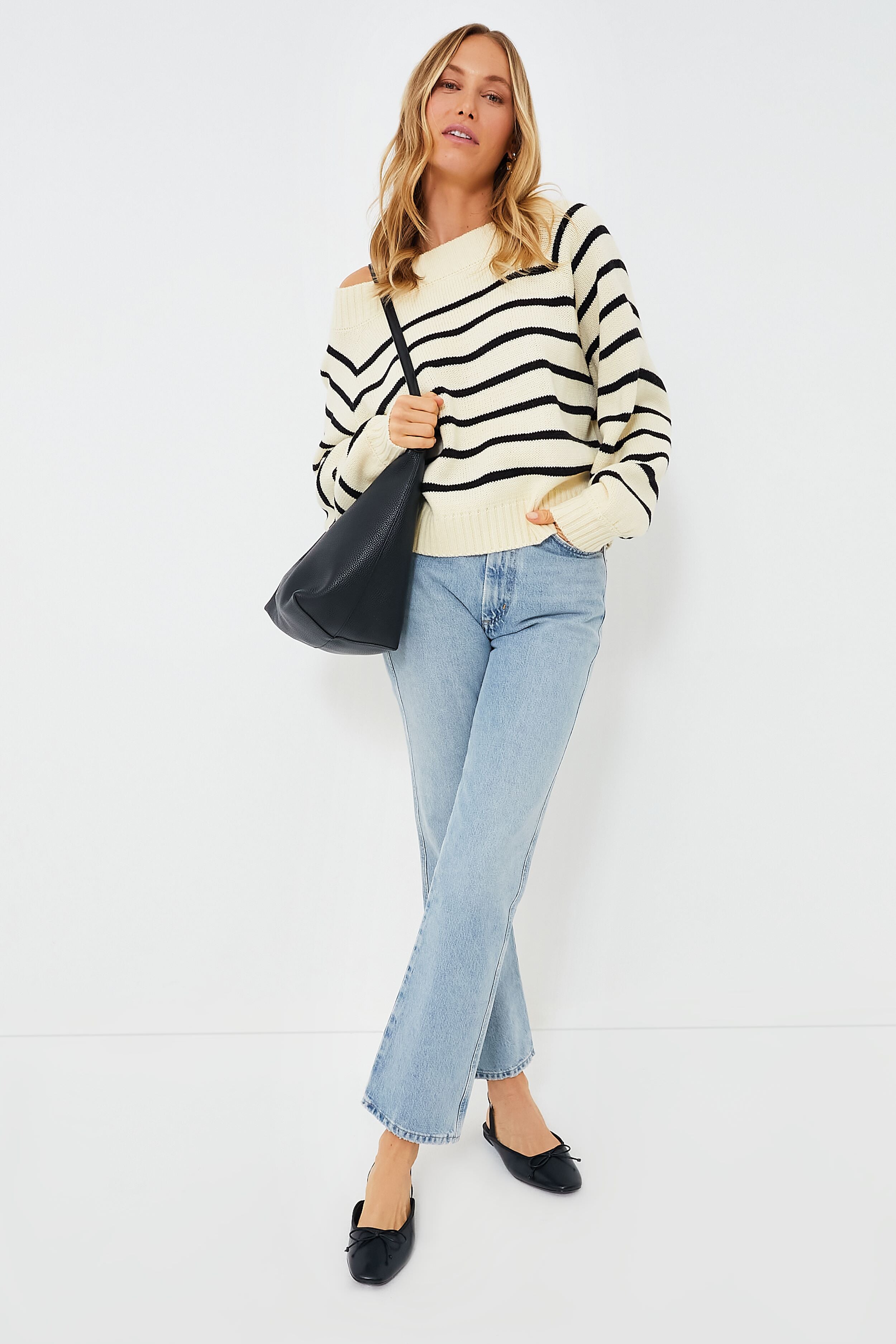 Black and Antique White One Shoulder Sweater