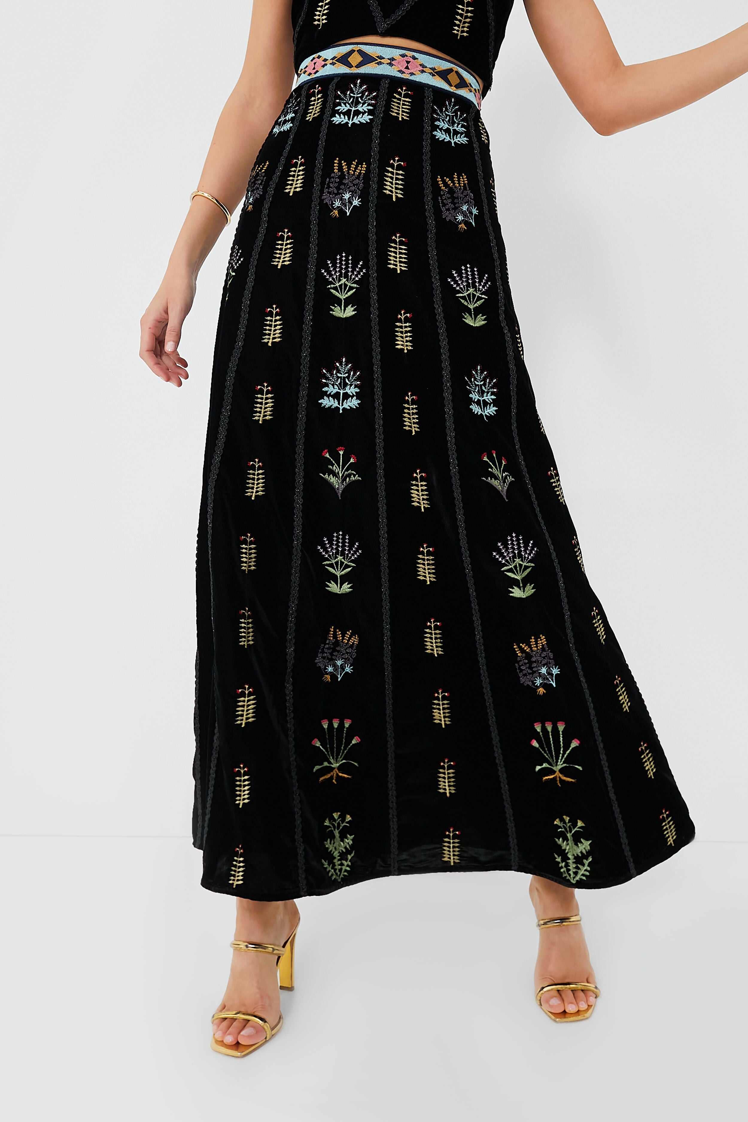 Black Camille Agra Embroidered Skirt