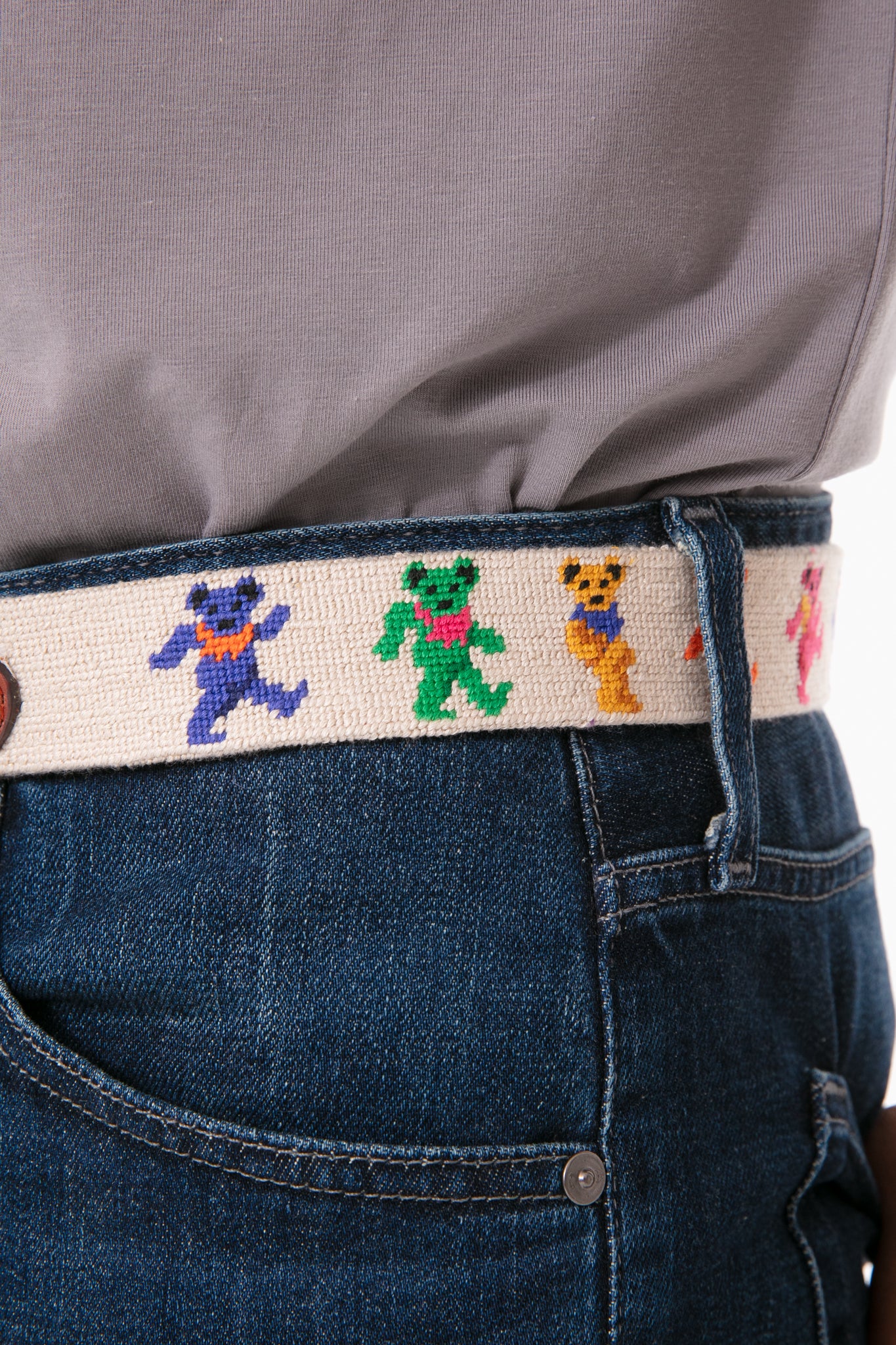 Oatmeal Dancing Bears Needlepoint Belt