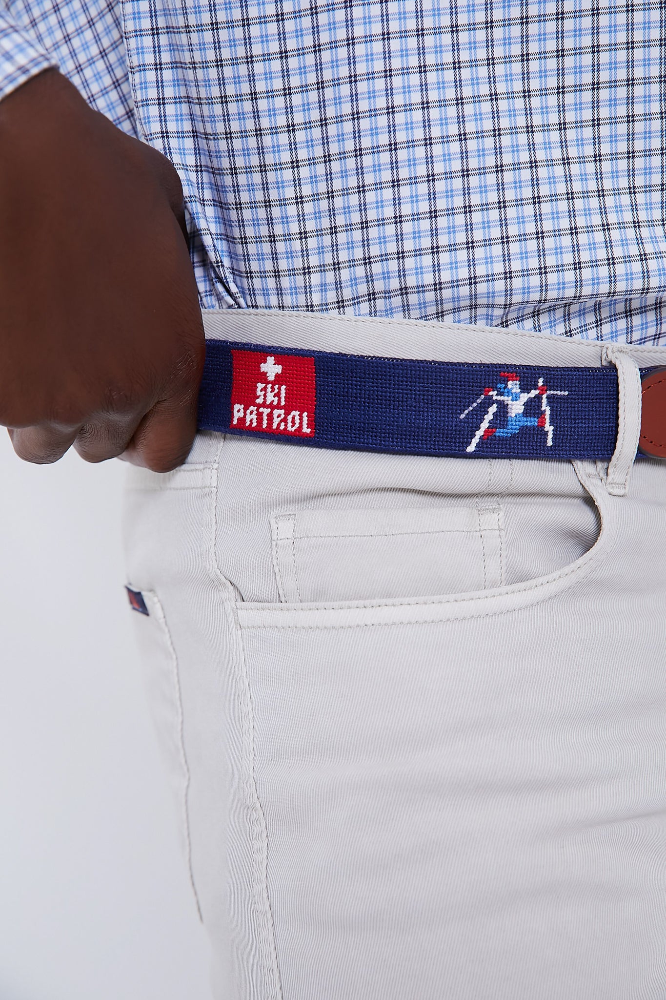 Navy Ski Life Needlepoint Belt