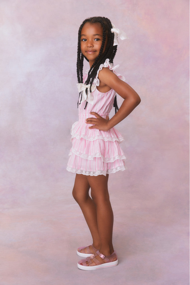 Girls Janelly Cotton Stripe Dress- Captiva Pink