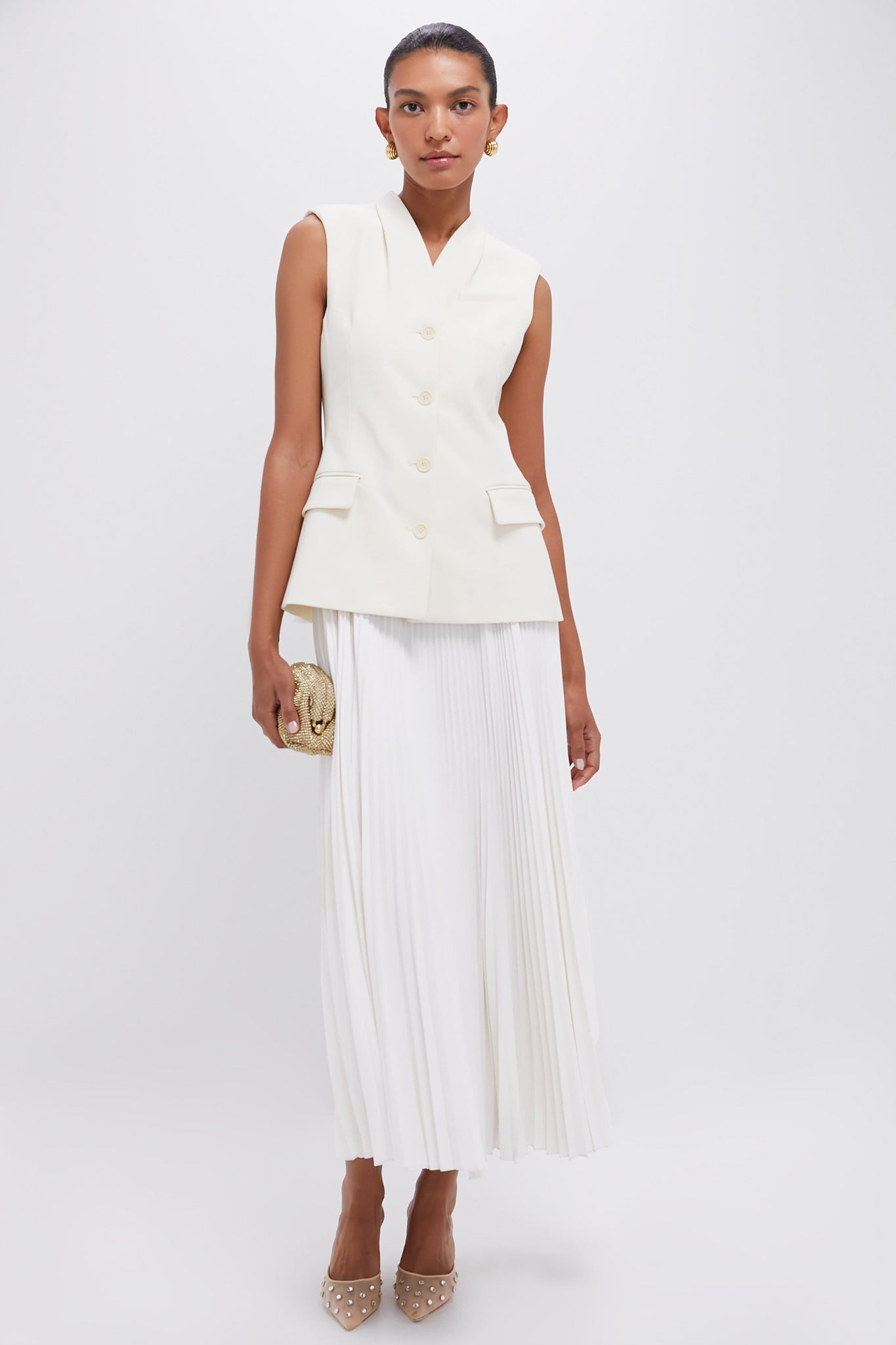 White Georgina Sleeveless Vest Midi Dress