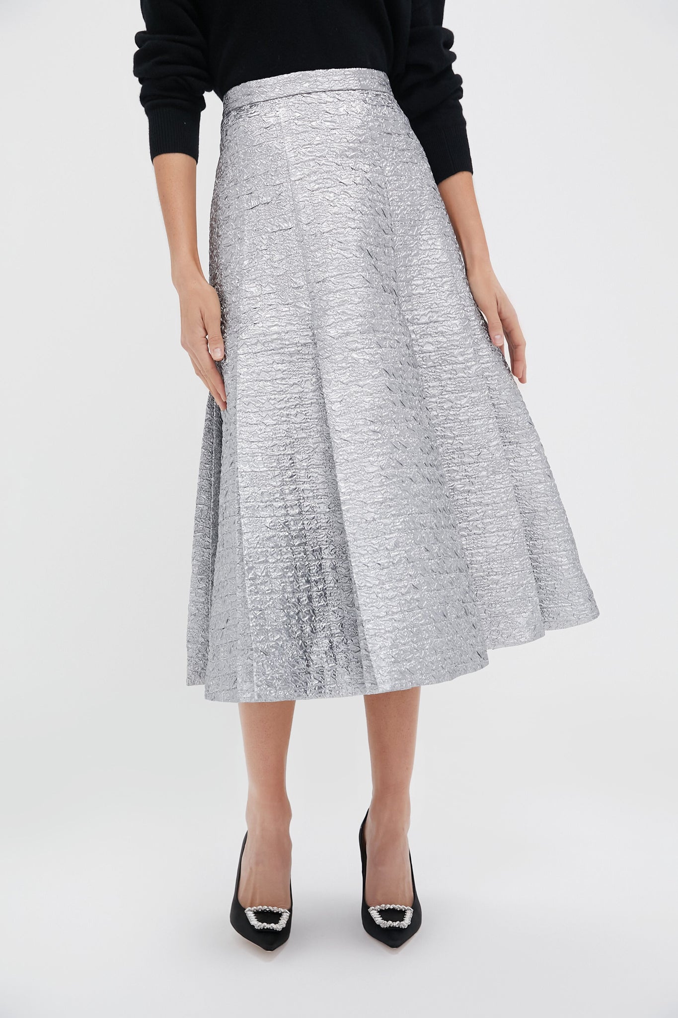 Silver Metallic Seersucker Kensie Skirt