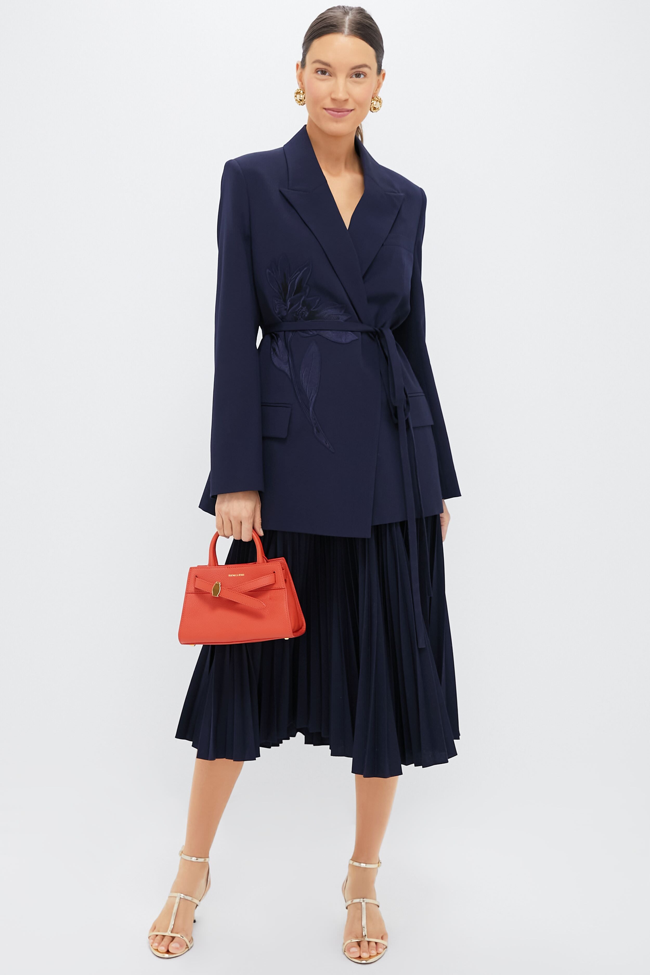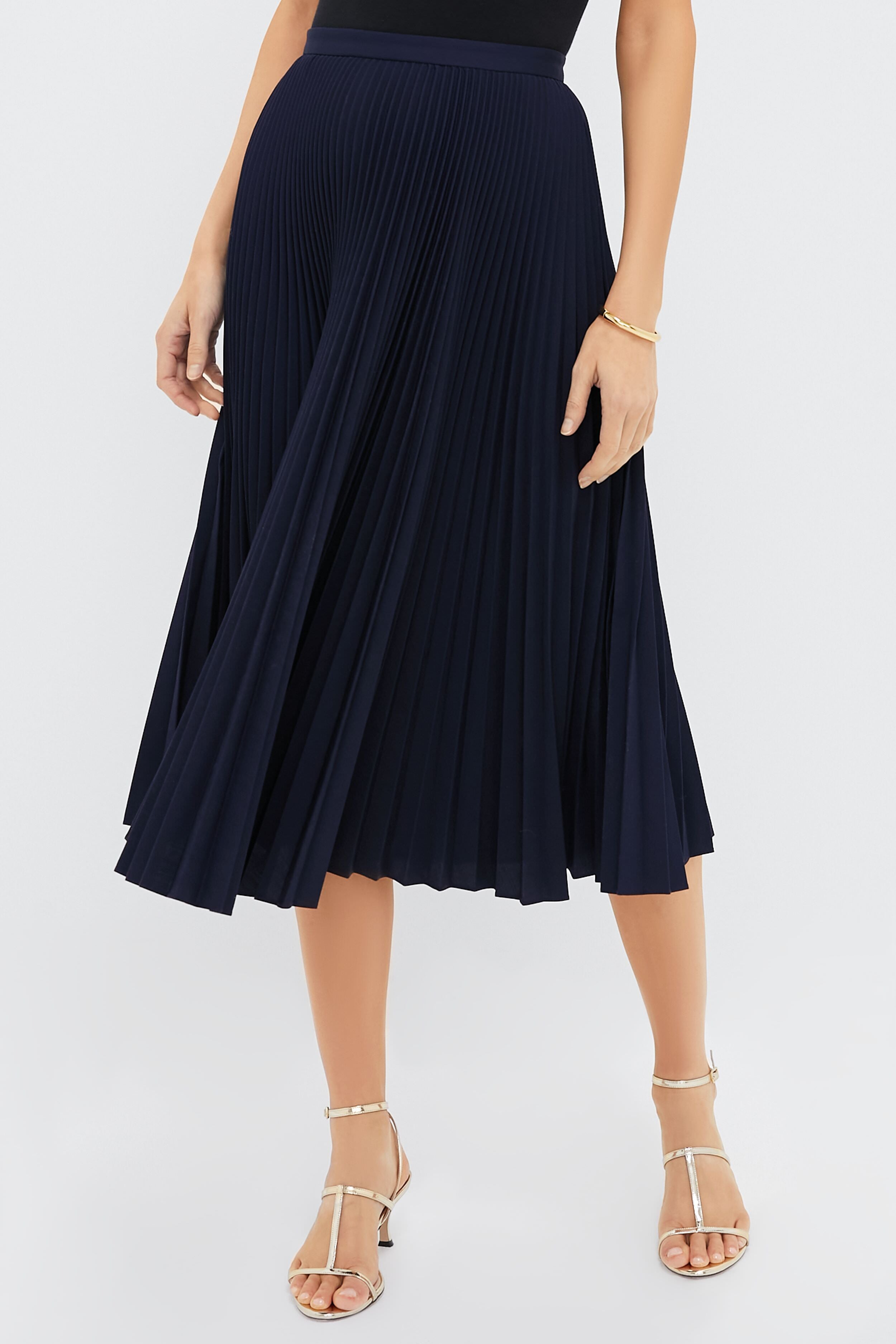 Navy Pleated Midi Skirt