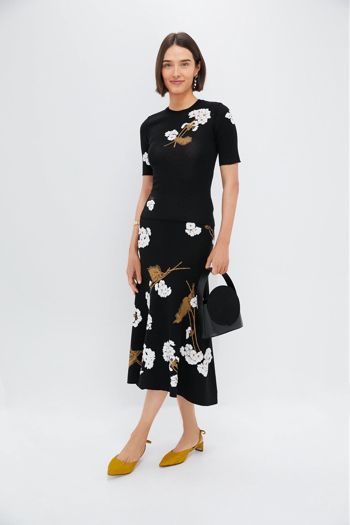 Elena Garden Black A-line Midi Knit Skirt