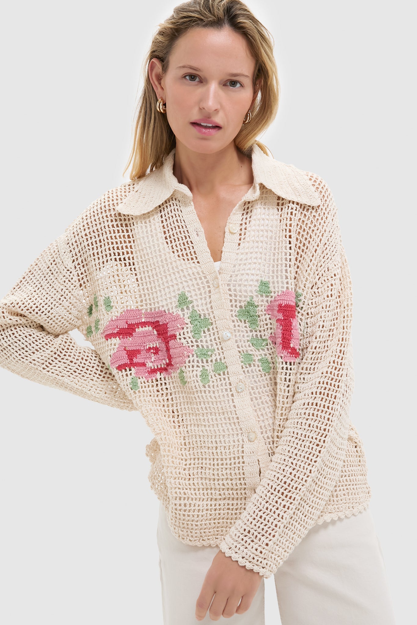 White Rosa Emery Crochet Shirt