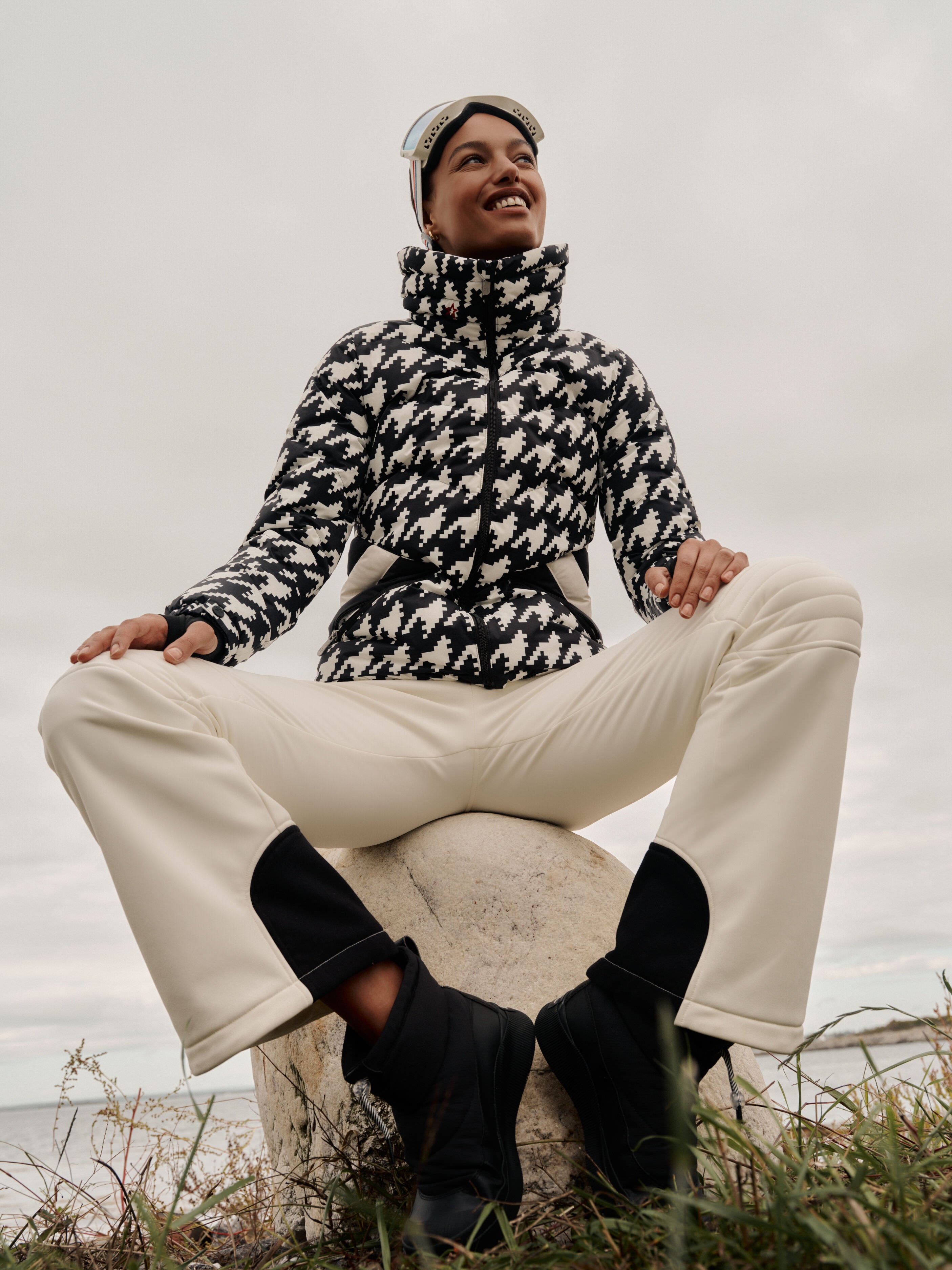 Houndstooth Black and Snow White Ski Duvet Jacket
