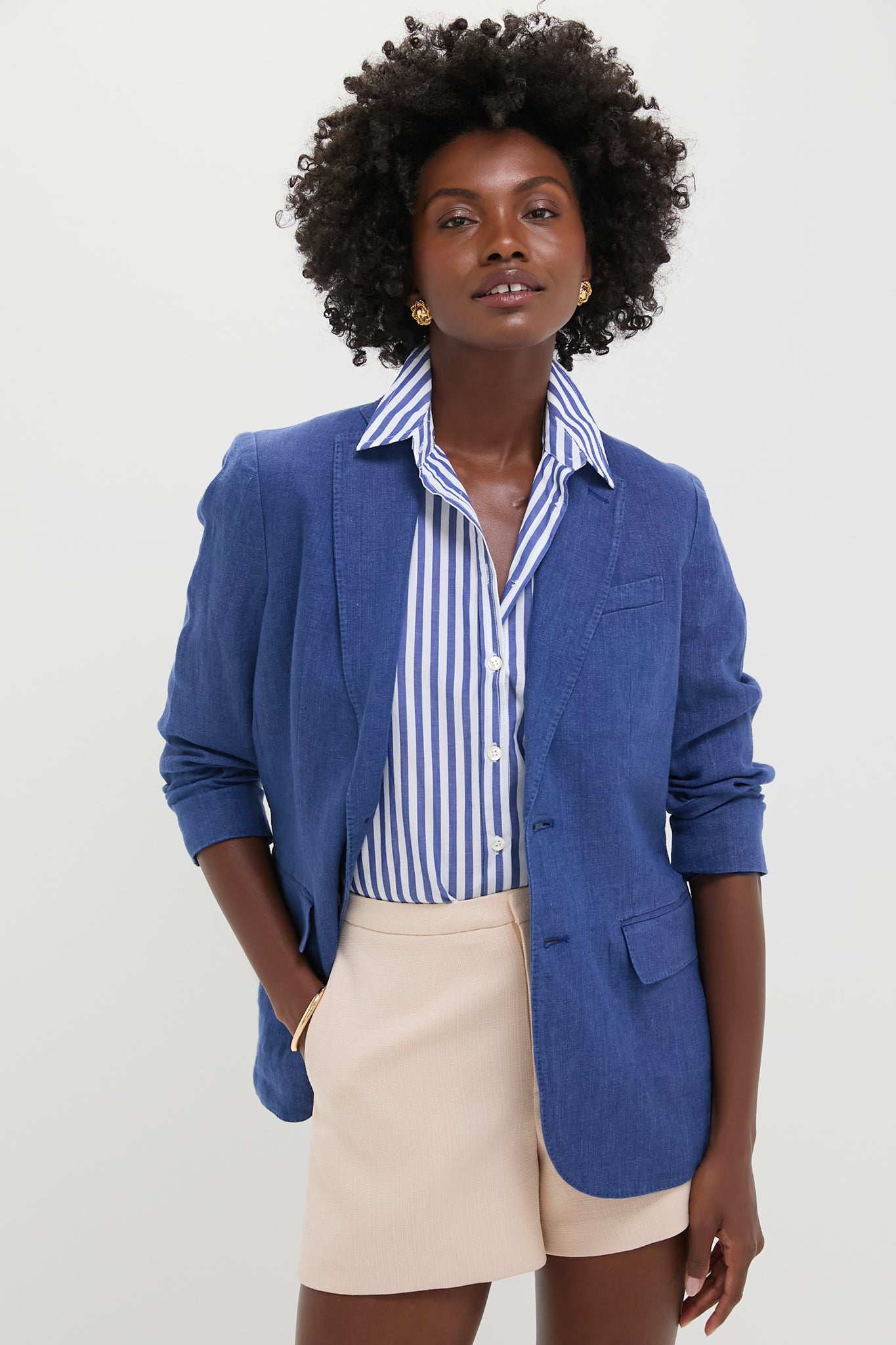 Harrison Blue Delave Linen-Polo Blazer