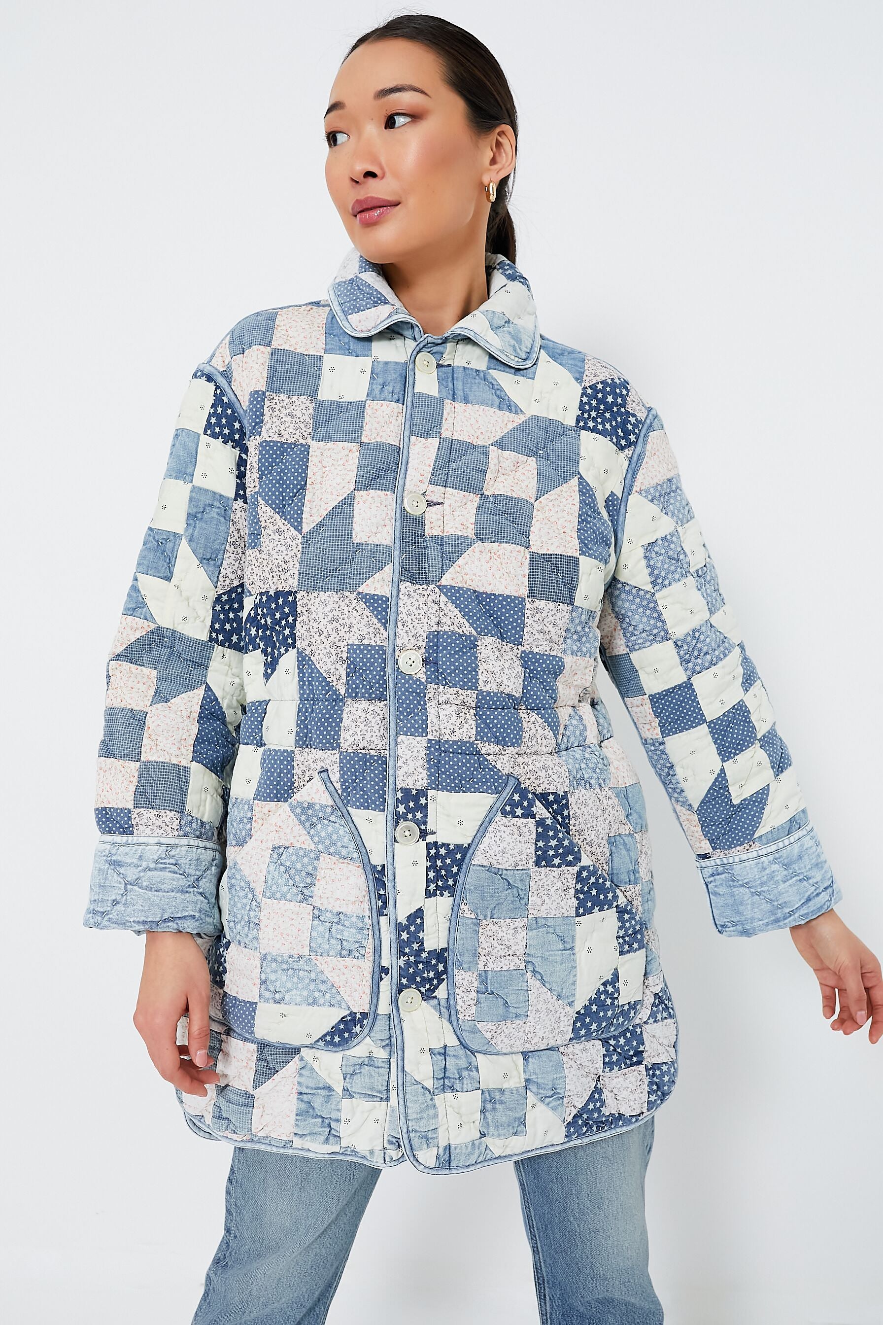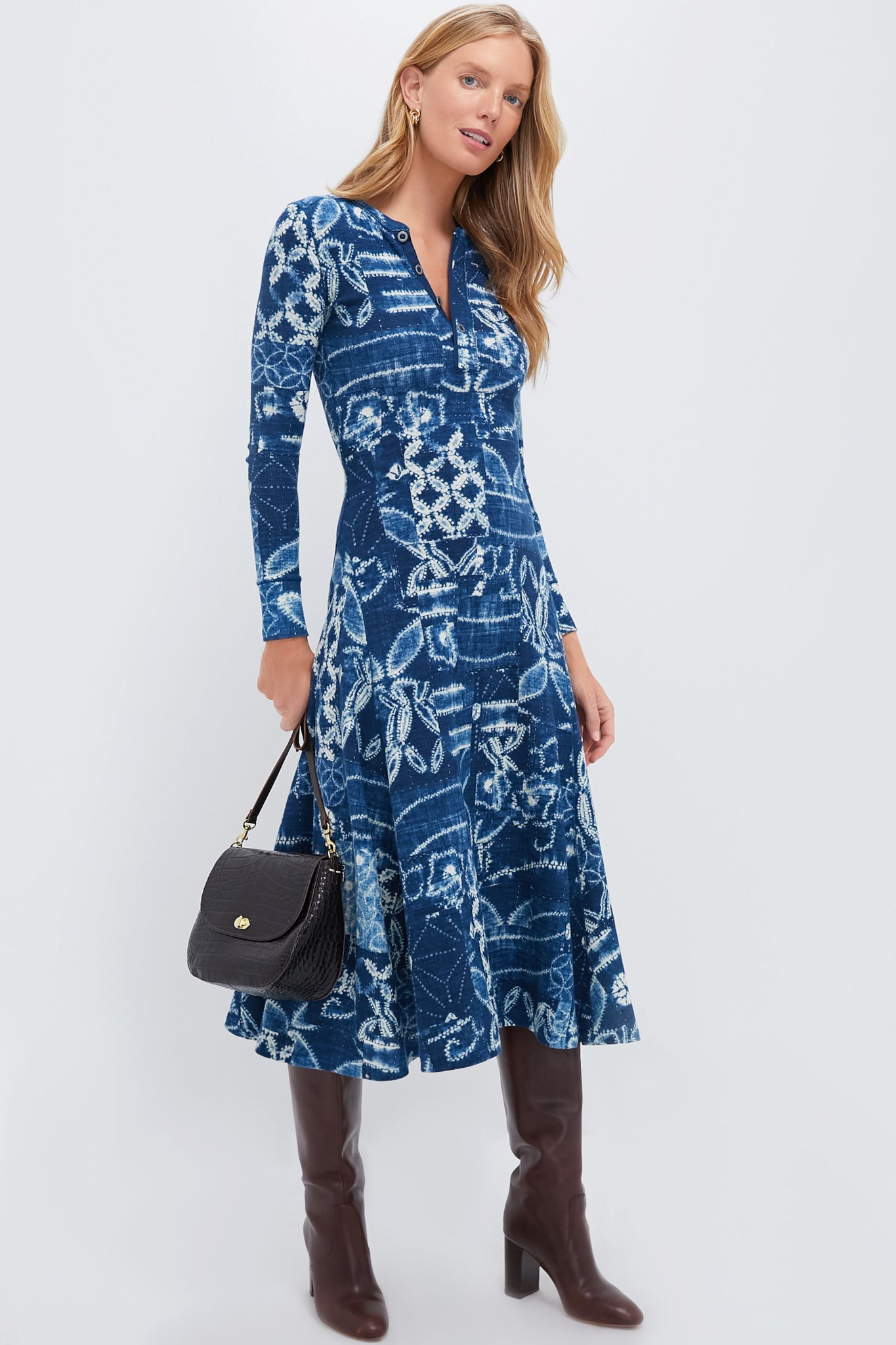 Indigo Shabori Patchwork Rowie Long Sleeve Day Dress
