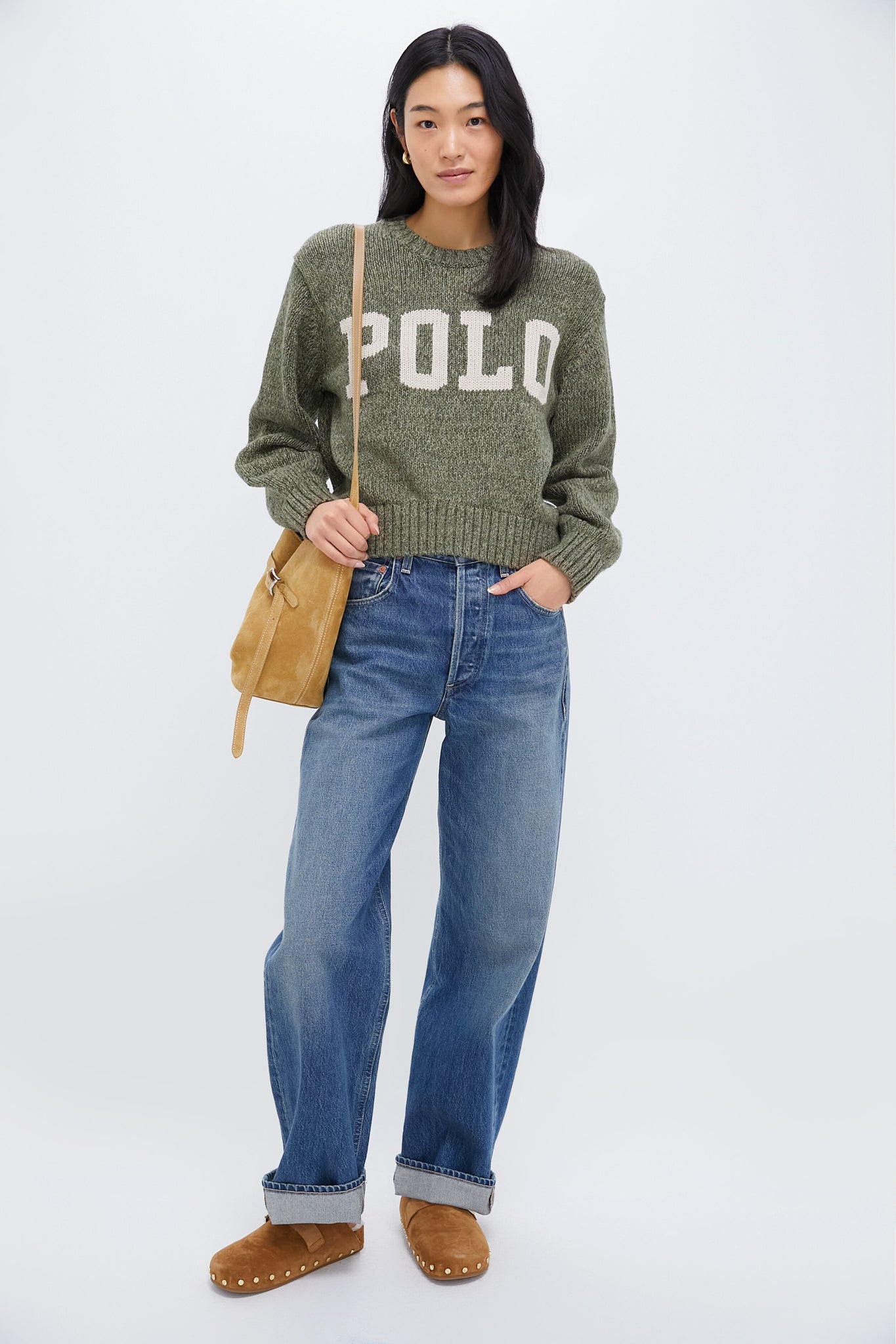 Field Sage Marl Cotton Polo Intarsia Long Sleeve Pullover
