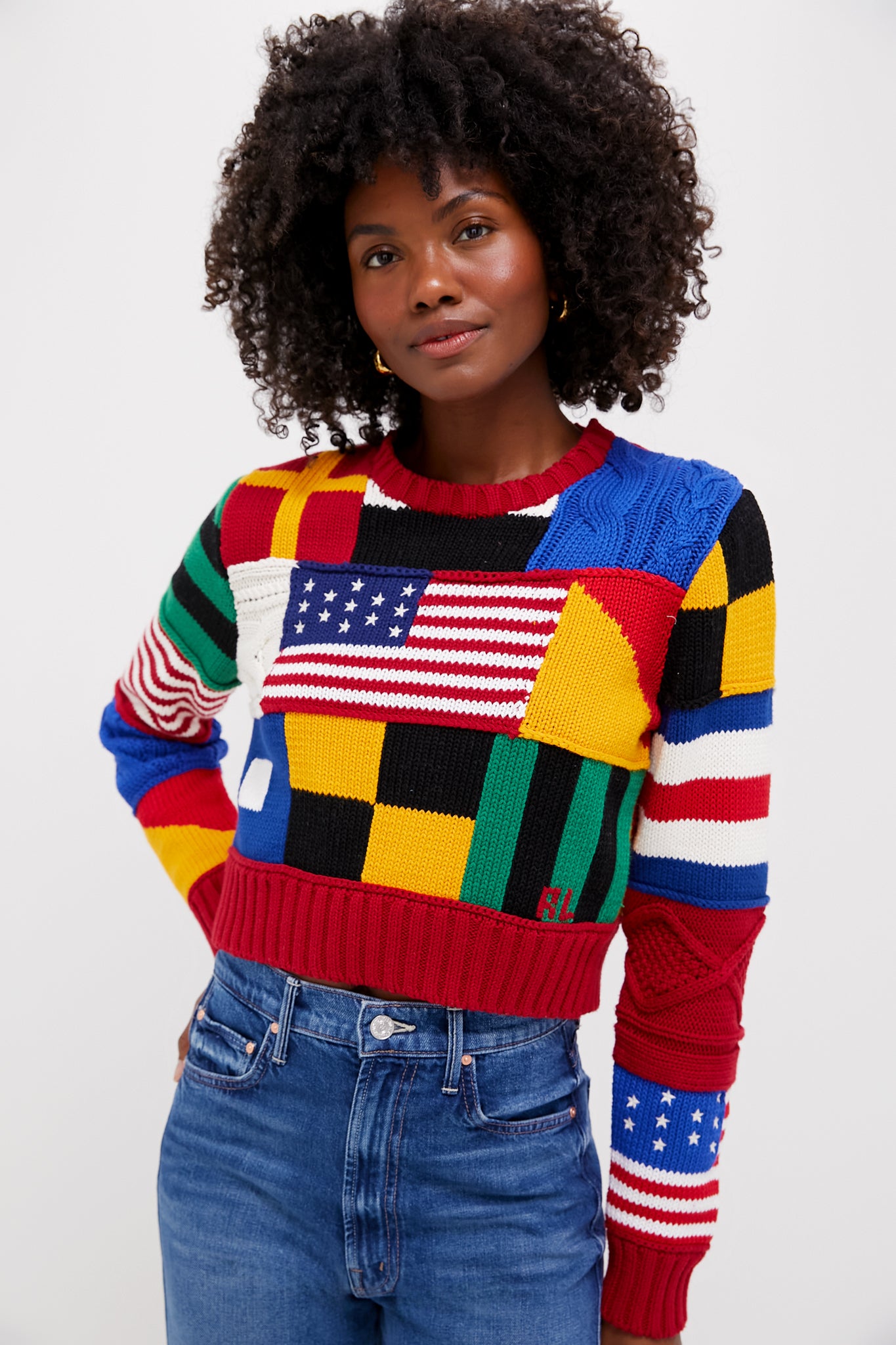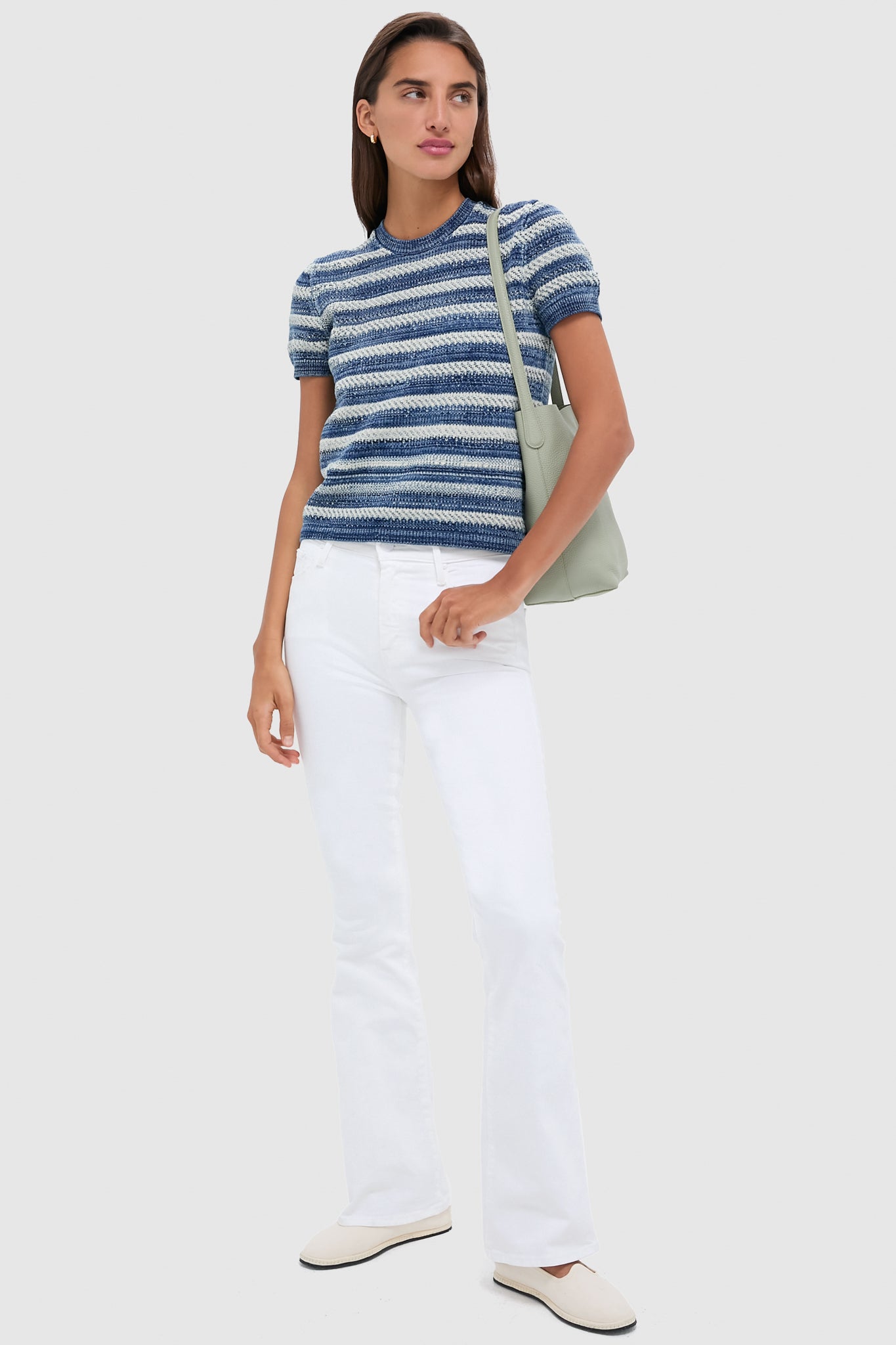 Indigo and Ecru Short Sleeve Pullover Sweater