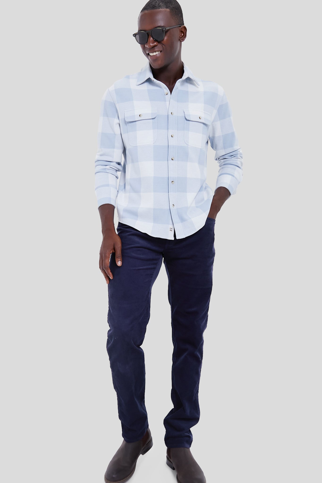 Light Blue Plaid Dunewood Stretch Flannel