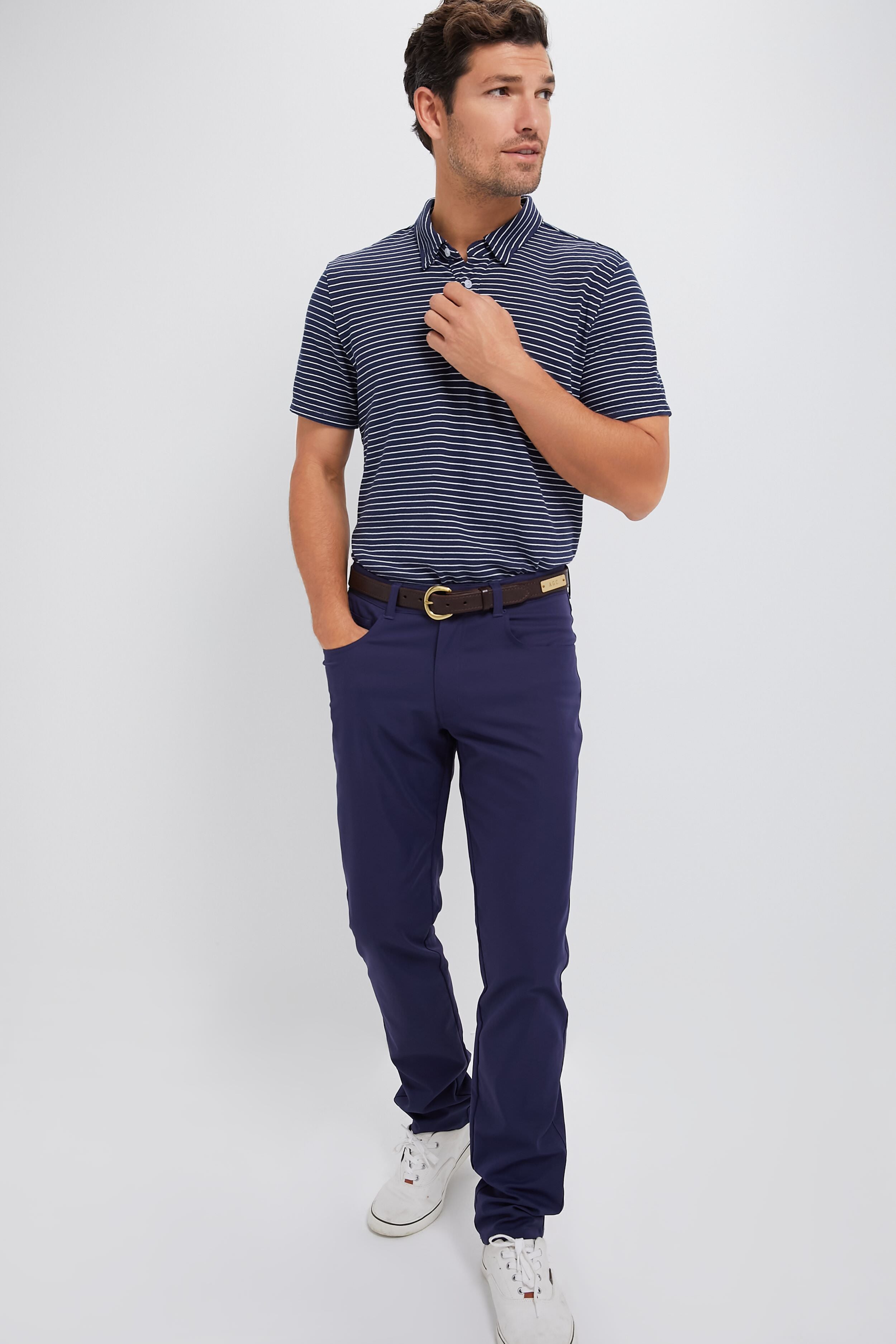 Striped Navy Stretch Linen Polo