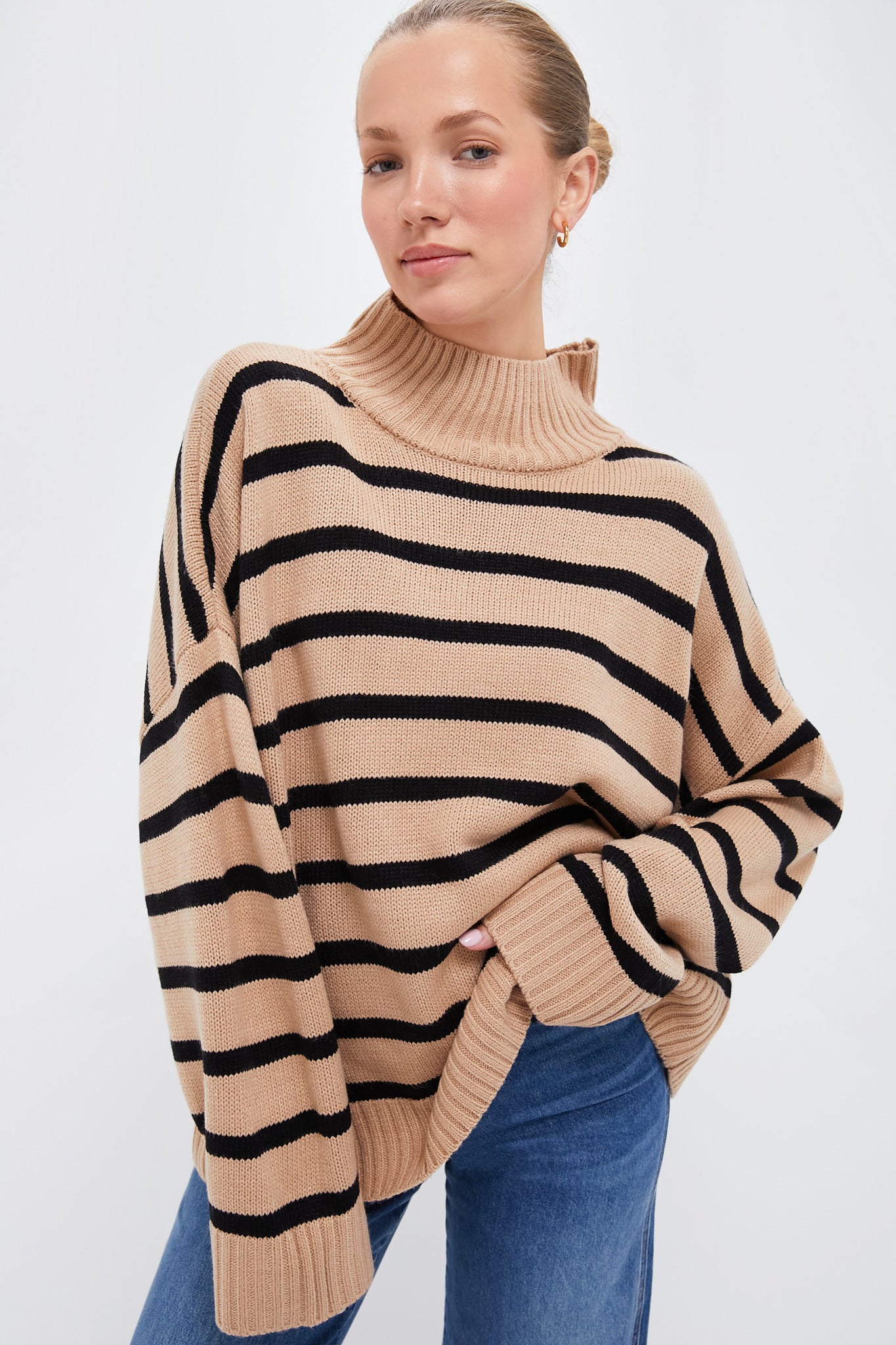 Soft Taupe and Black Oversized Funnel Neck Sweater