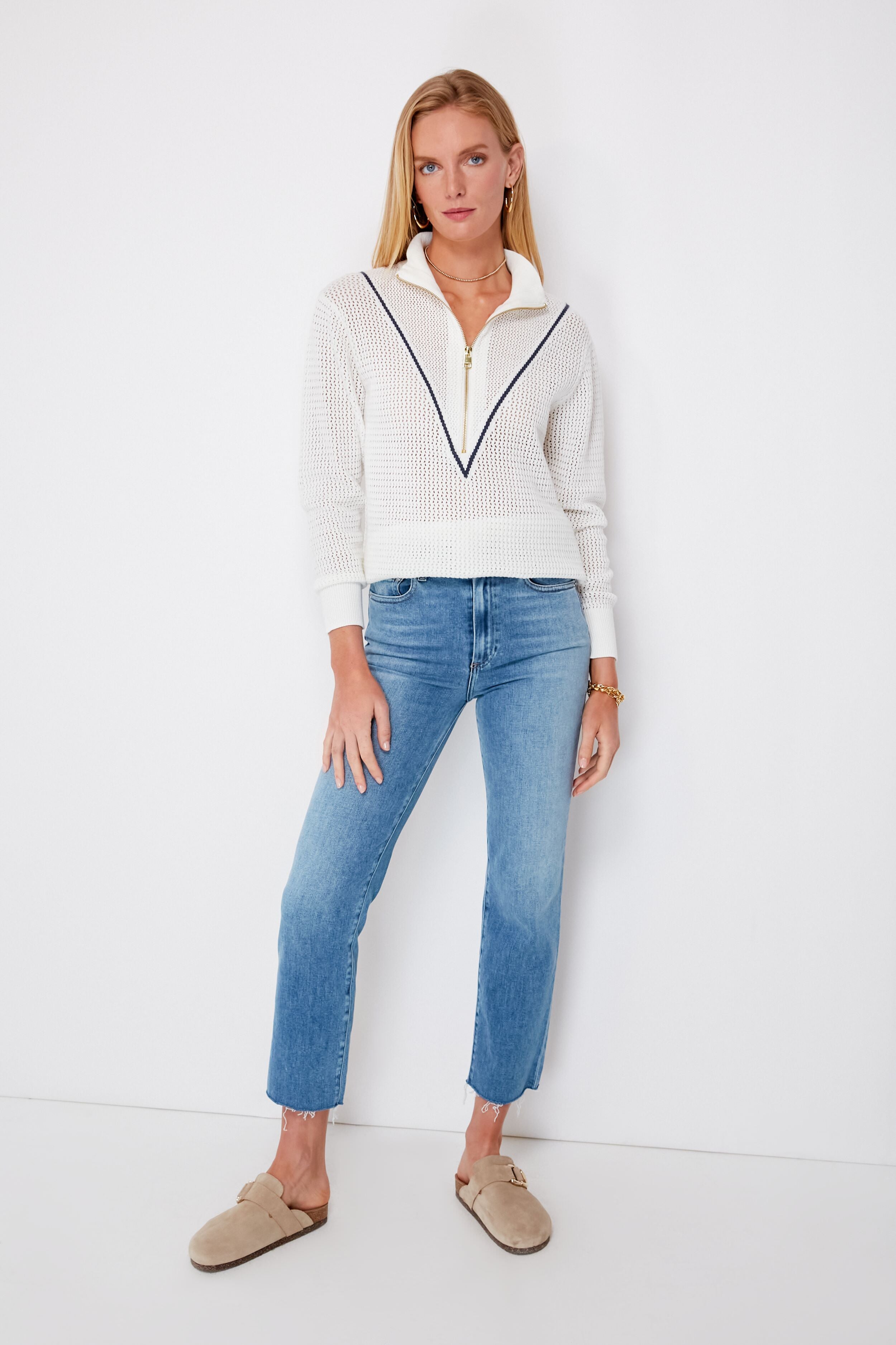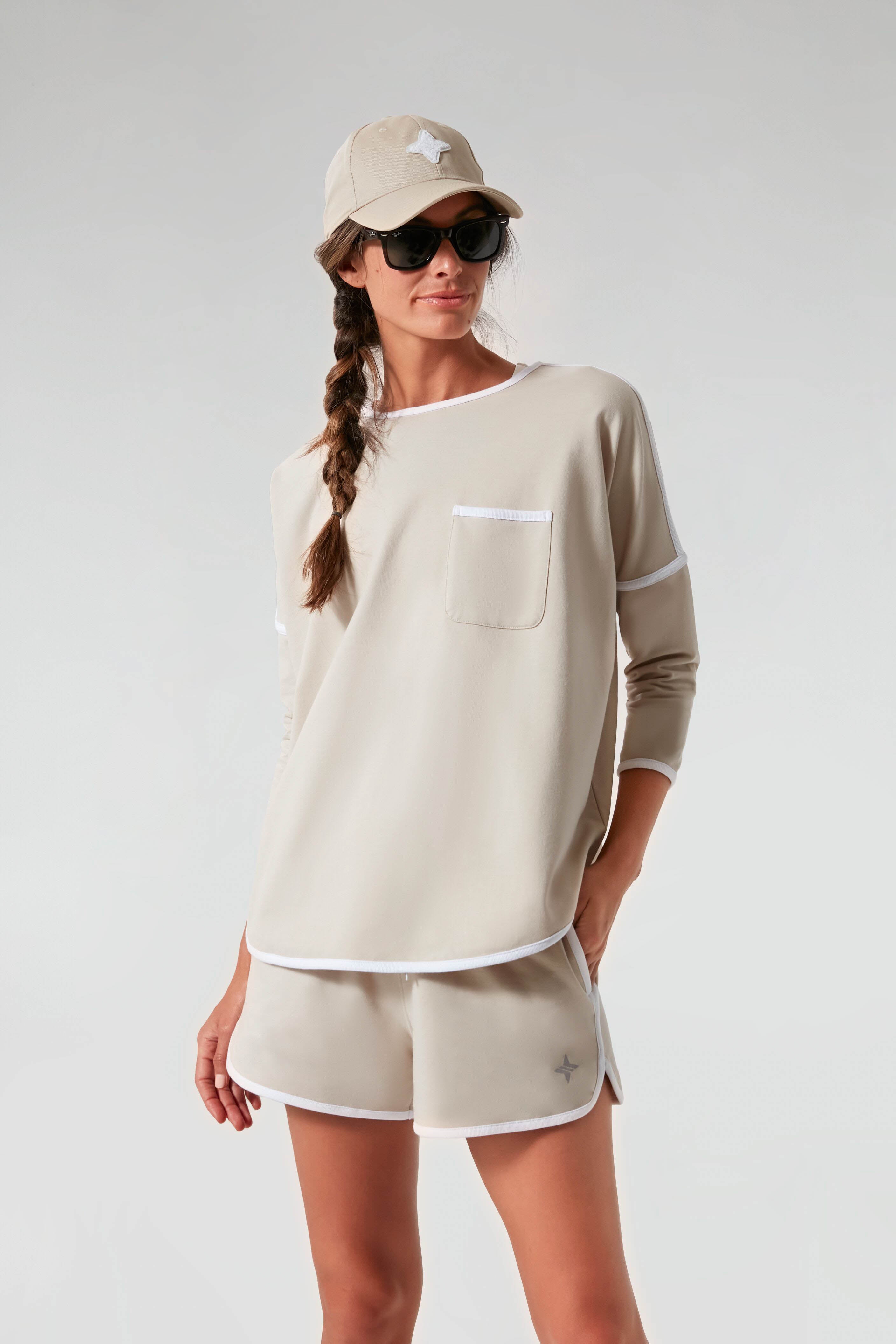 Sand and White Terry Farah Pullover