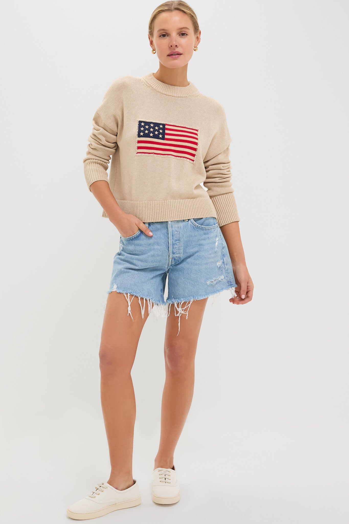 Cropped Beachwood Cotton Americana Sweater