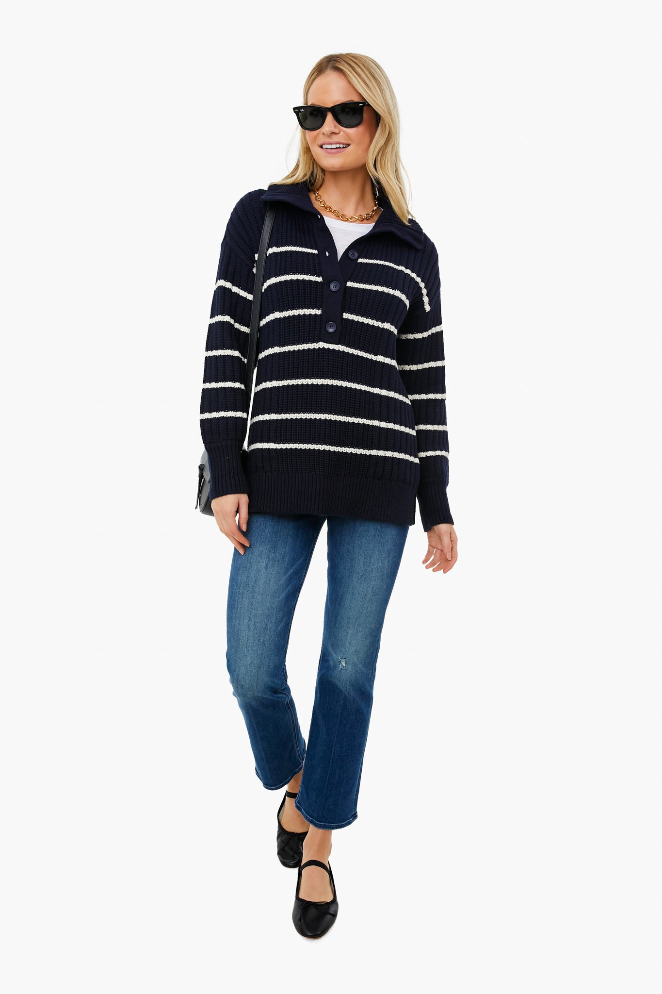 Navy And Cream Paloma Mock Sweater