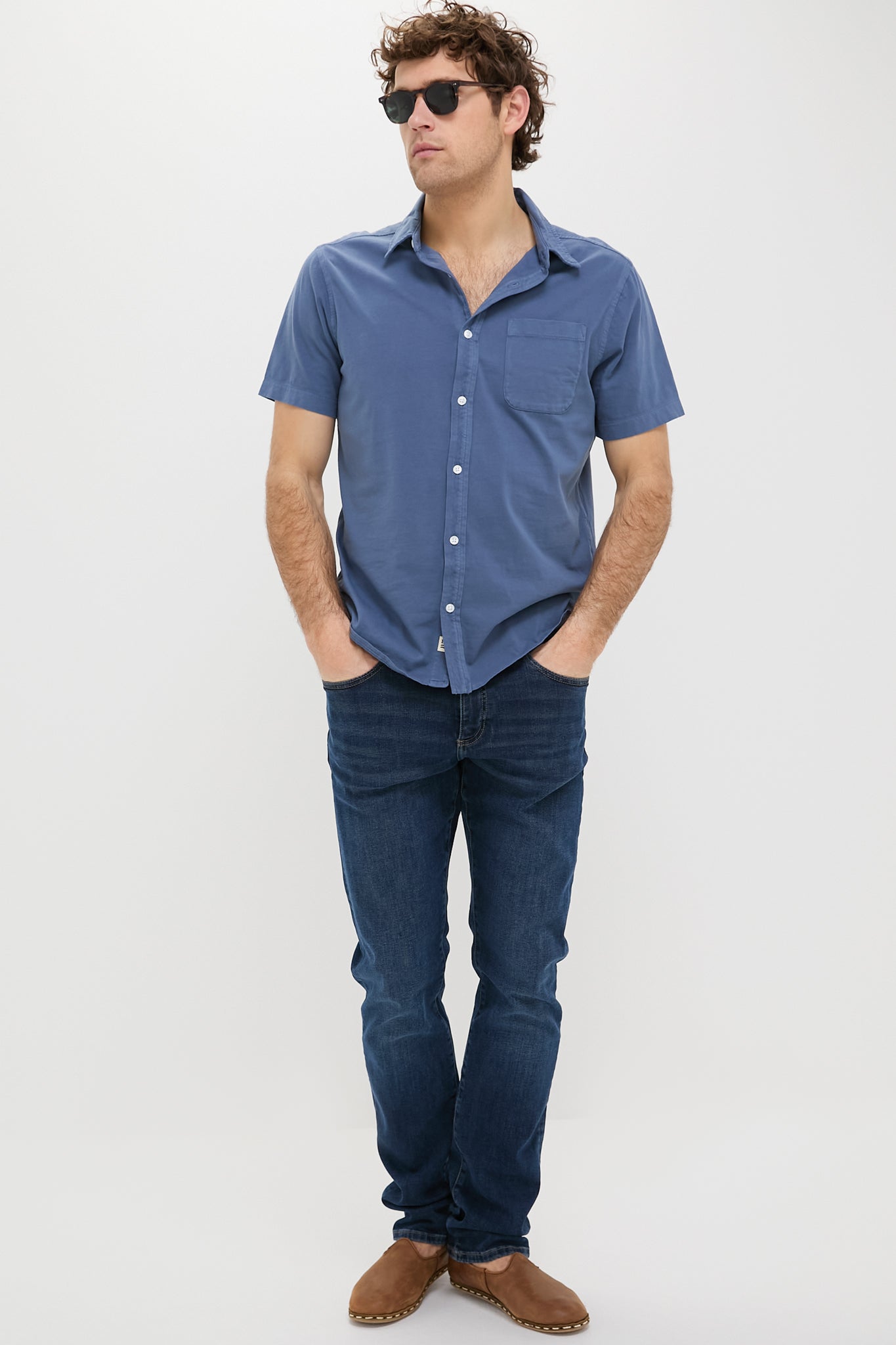 Navy Short Sleeve Saltaire Shirt
