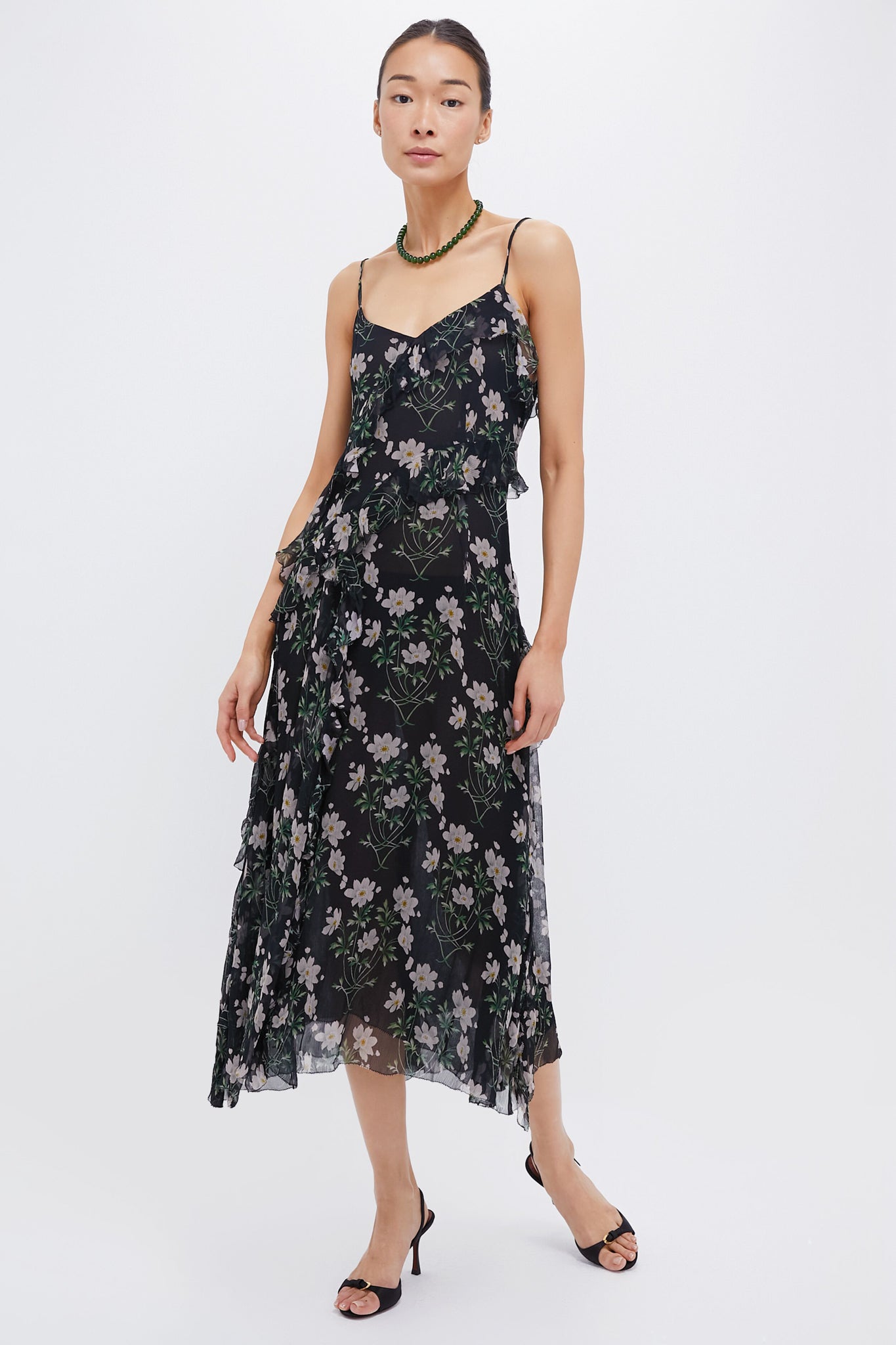 Black Elizabeth Print Midi Tiered Dress
