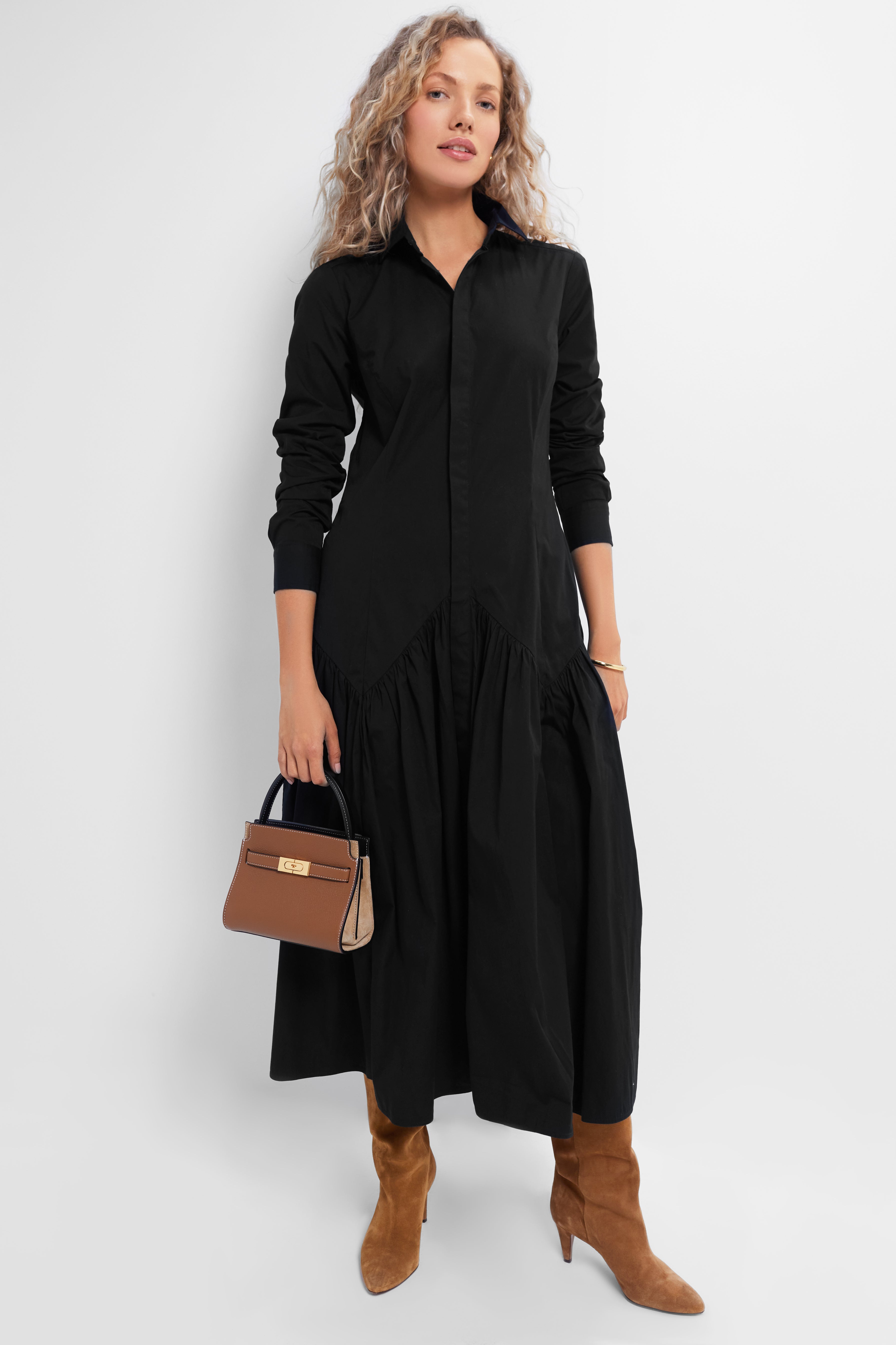 Polo Black Cotton Poplin Long Sleeve Day Dress