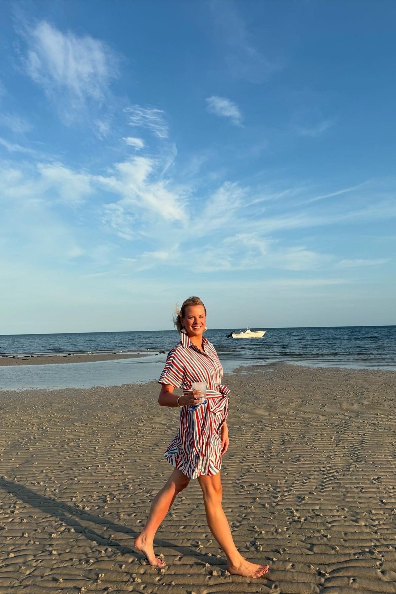 The Americana Stripe Cotton Poplin Mini Callie Dress is the ideal dress for the warm-weather months. With a spread collar. cinched pleating at the waist. and a figure flattering fit will surely make this dress a standout in the rotation. Pair with sandals or sneakers for a day full of fun.