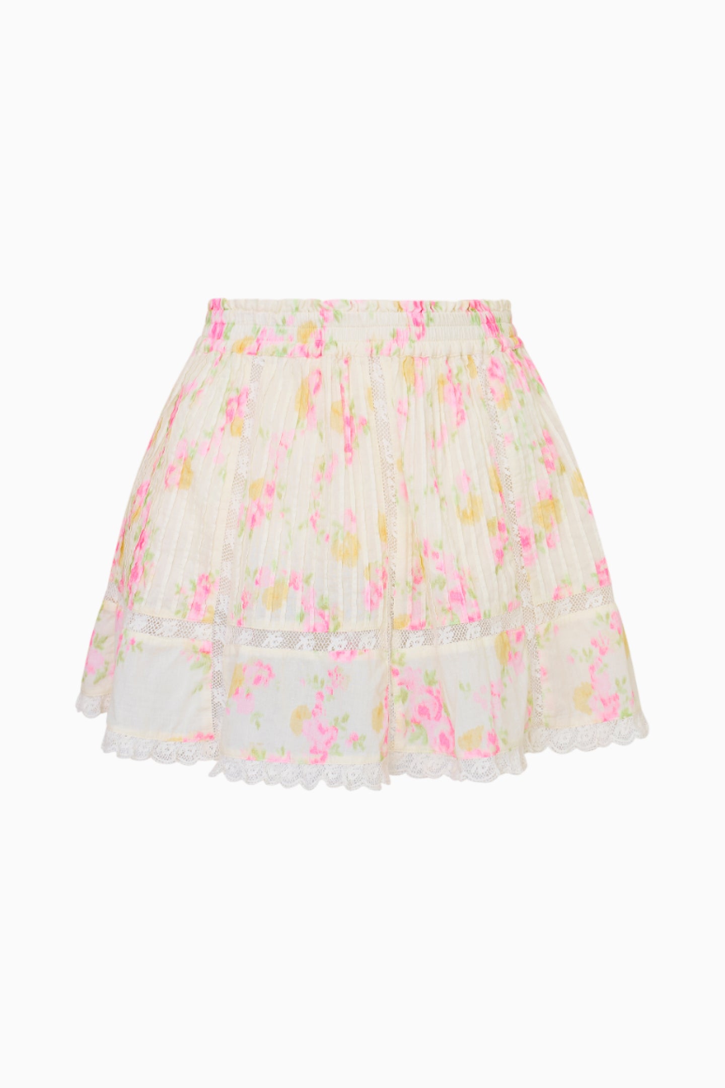 Introducing the Amrina Skirt. Designed on a lightweight cotton voile fabric. this mini features a bright Italian countryside-inspired floral all over. The Victorian-inspired skirt has an A-line silhouette. flirty lace details. and smocking at the waist for easy pull on. Pair with the Elsette Top for a full set.