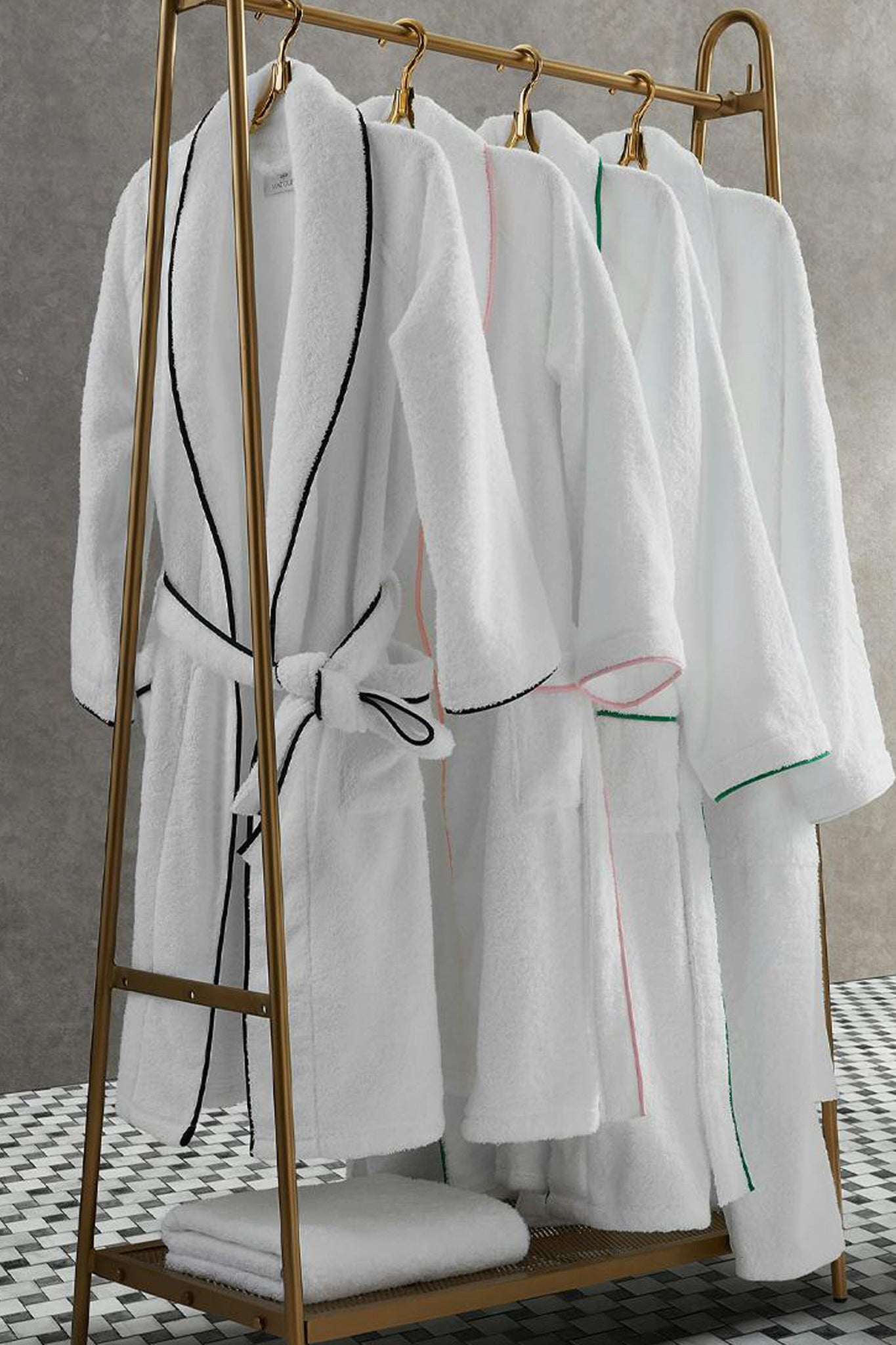 A long cotton terry robe is a staple in our closets. With a simple. bias-tape blue piping detail. this fluffy style will make you feel like you escaped to a luxury resort. Pair with slippers and pajamas for the ultimate at-home cozy combination.