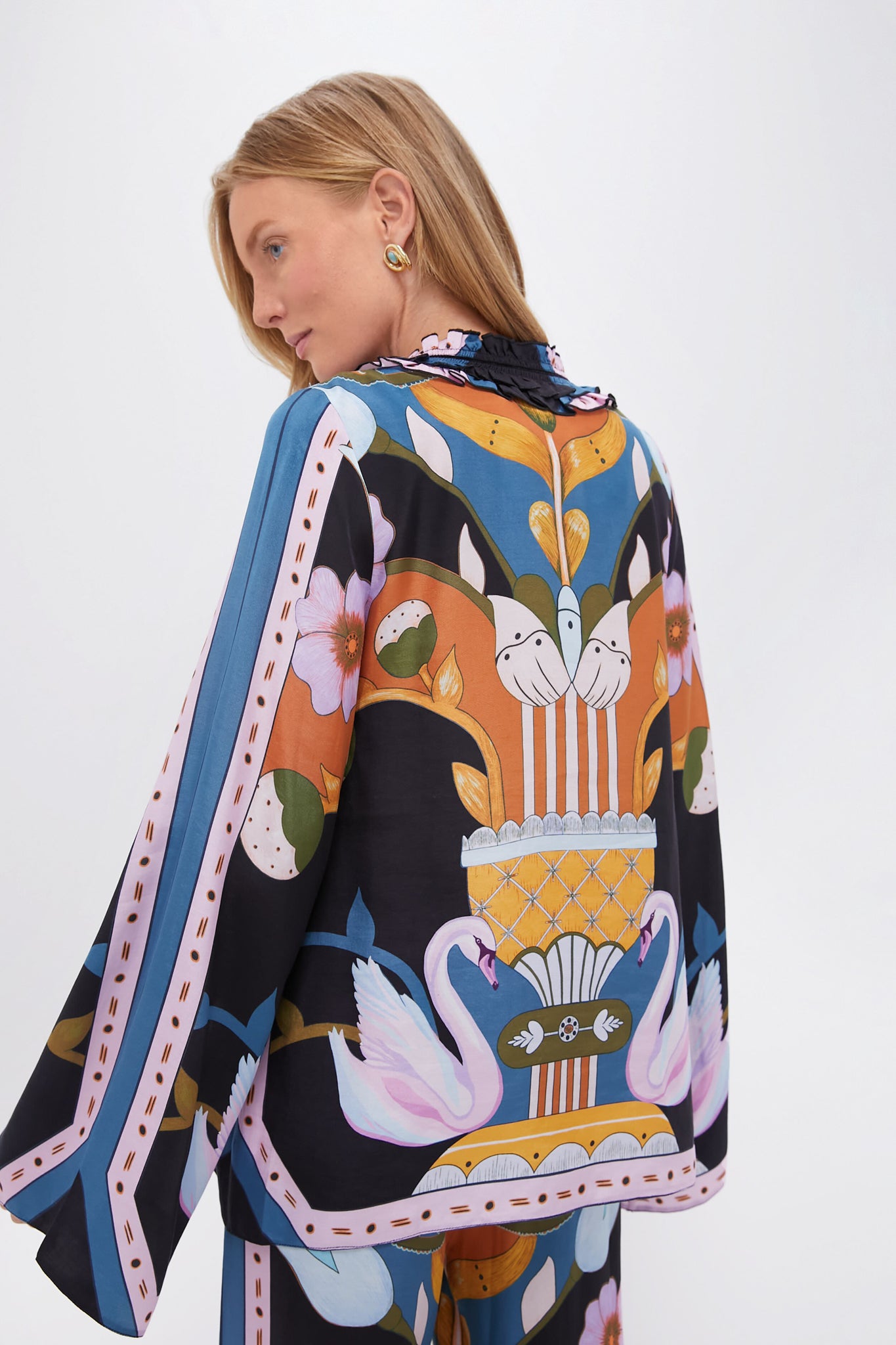 Simple yet elegant. the Tess Top is the kind of style you'll be pulling out of your closet over and over again. Featuring a notched neckline with self ties and long bell sleeves. this relaxed silhouette is an epitome of comfort and style. Pair with the matching Black and Blue Multicolor Print Madison Pants. this chic coordinating look is sure to gather compliments.