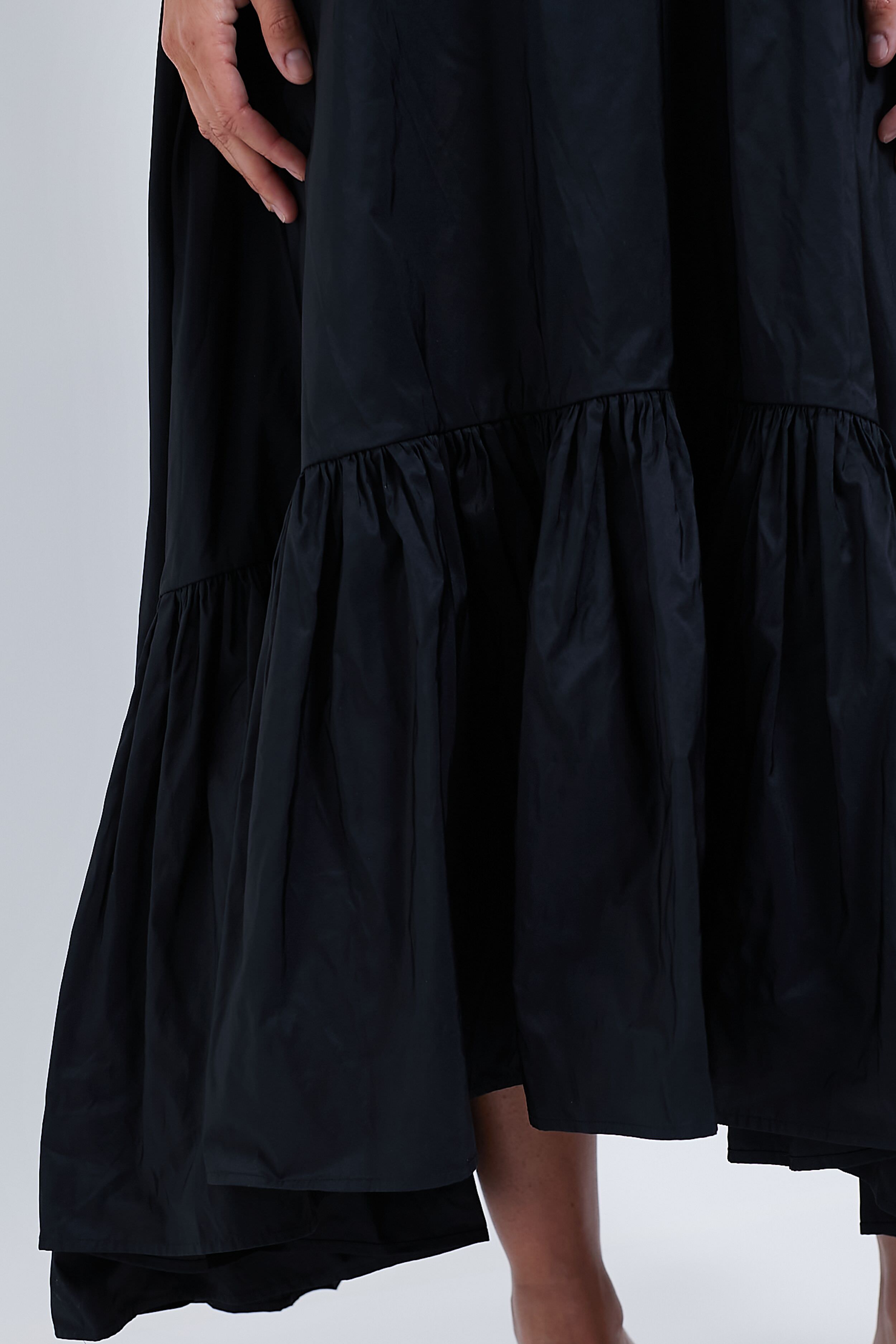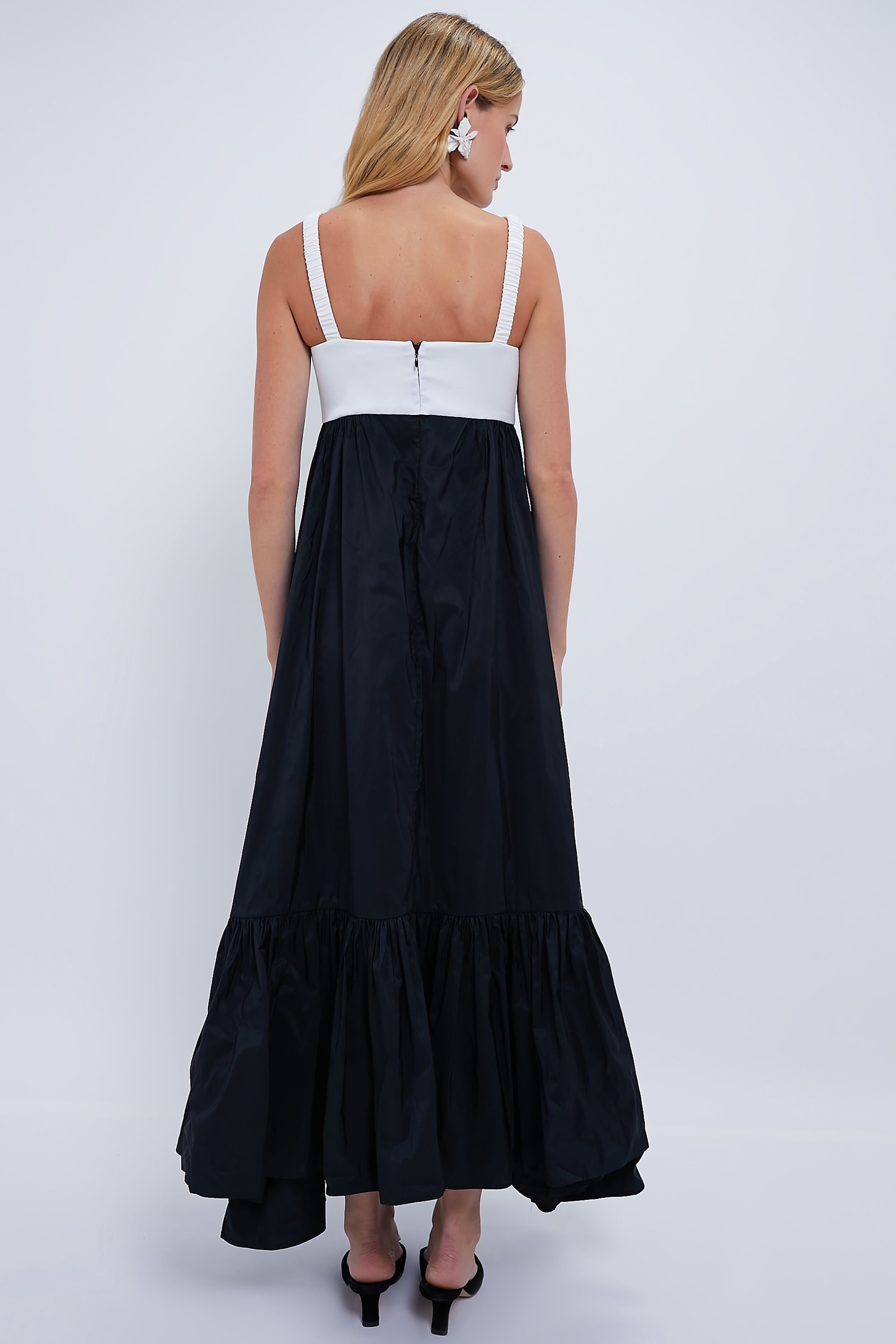With an asymmetric hemline. bustier bodice. and ruched straps. this dramatic maxi is a statement-making piece. Perfect for galas. formal dinners. and elevated cocktail parties. we are styling this with a clutch and heels for a timeless look.