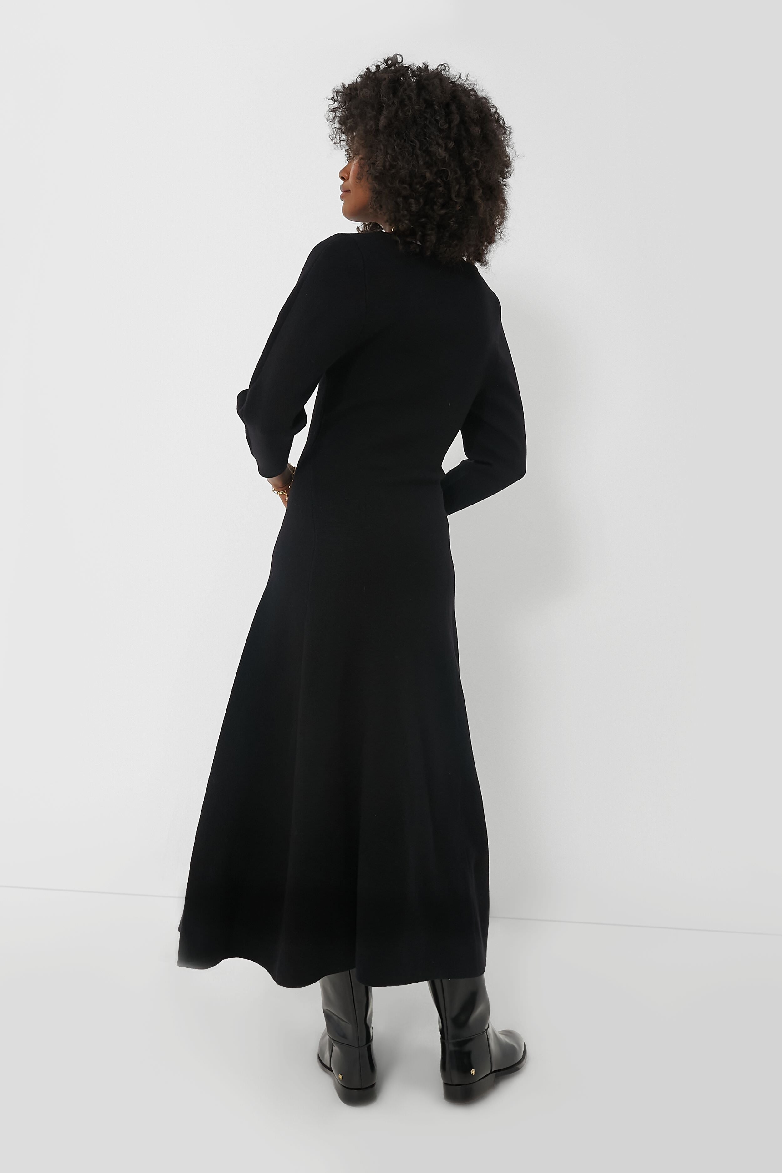 The Black Blanca Dress is the elevated essential you need in your closet this season. Featuring a flattering V-neckline. three-quarter length sleeves. and a flouncy skirt for easy movement. this midi delivers a figure flattering fit in a sleek silhouette that you can style for any occasion. any time. Pair it with boots and layered necklaces for a sophisticated yet refined desk to drinks look. layer a cardigan over the top and add flats to dress it down. or add heels and a clutch for dinner and drinks.