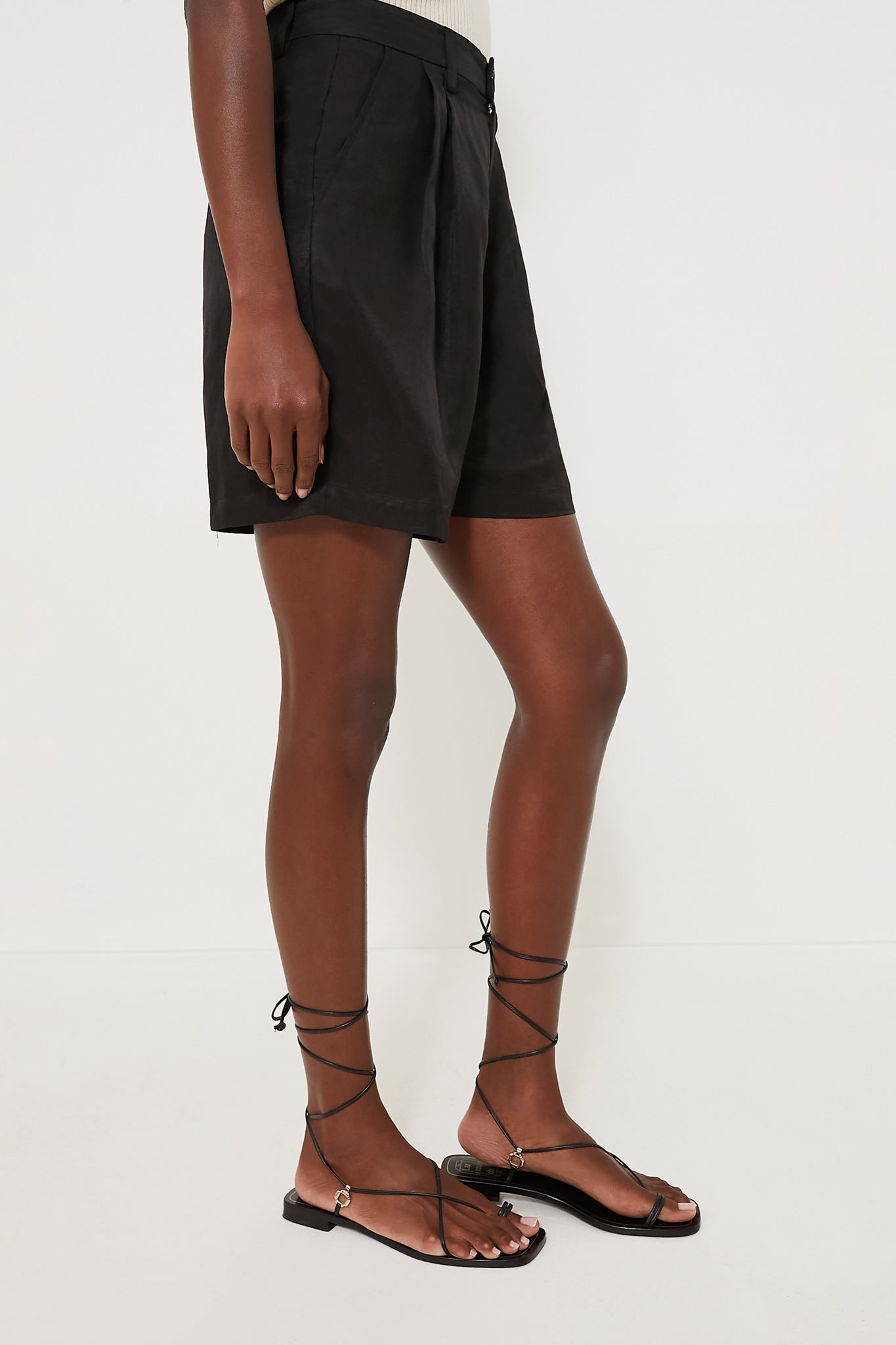 The Carrie Short is a pleated. trouser-inspired bottom made from a luxurious wool blend. This tailored style is fully lined and features five functional belt loops. two back welt pockets. slanted front pockets. and a four-button closure. Evoke a sense of vintage-chic by pairing with fishermen sandals and a collared shirt!