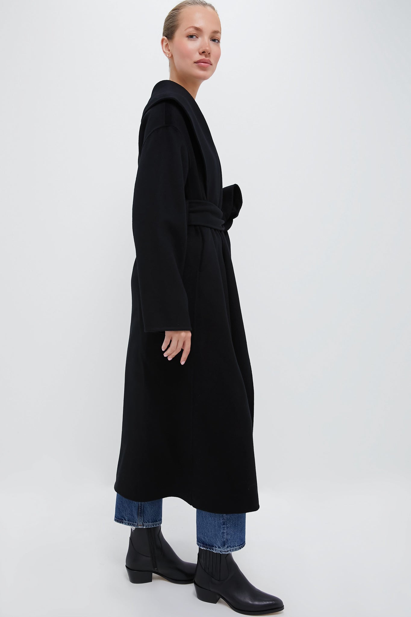 The Cashmere Wrap Coat is an outerwear essential. With a timeless wrap design and belted waist for a flattering. adjustable fit. you'll never want to take this coat off! The styling options are endless. we chose to pair it with jeans. a gray sweater. black bag. and black boots for a polished everyday look.