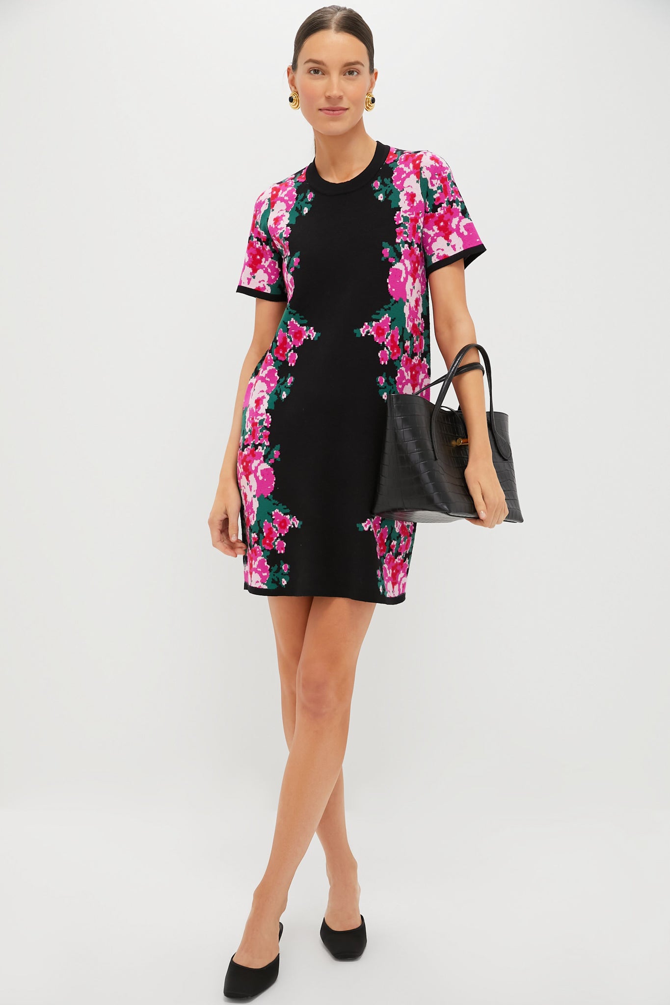 The Black Croc Embossed Petite Penne Tote perfectly fits all the things you'll need from day to night. With pasta-shaped gold hardware that adds the perfect finishing touch. allow this bag to carry you from shopping during the day. to an Italian dinner for two at night!