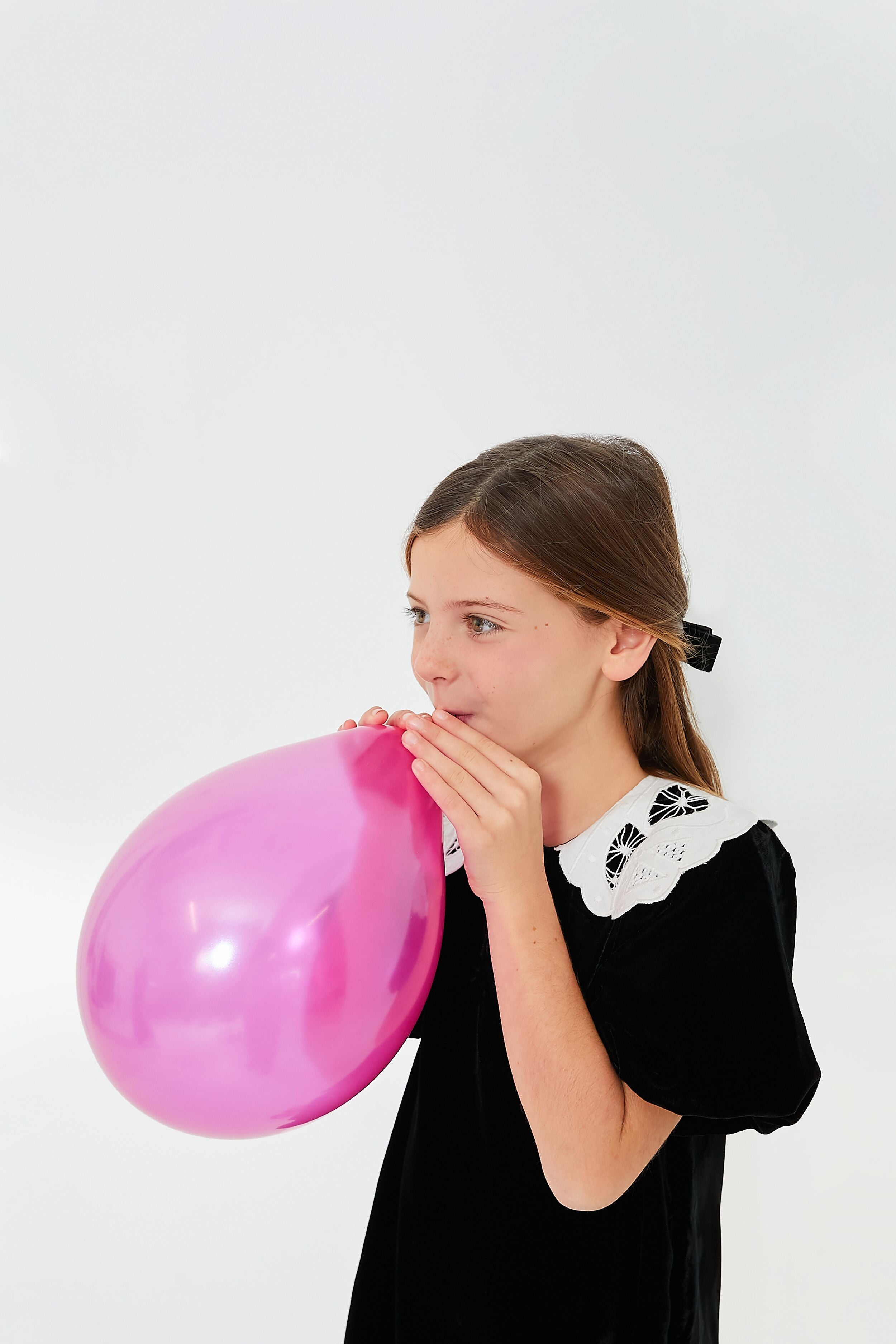 The Black Eliana Embroidery Puff Sleeve Dress is the perfect dress for your little one's wardrobe this season! Featuring a ruffled lace neckline. short puff sleeves. and a darling fit-and-flare silhouette. your kiddo will want to wear this mini everywhere from weekend brunches to holiday celebrations. Style with tights and Mary Jane's. and add a cardigan if the weather warrants for a fun ensemble.