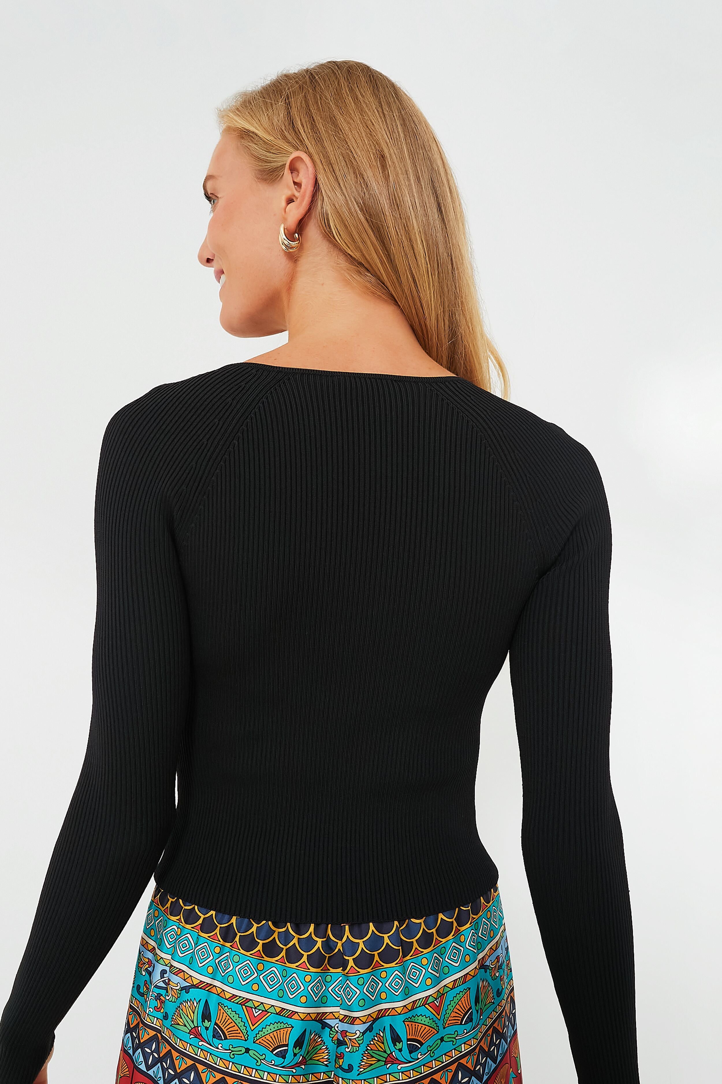 A simple yet sleek closet staple. the Black Giuliana Top delivers an unbeatable silhouette complete with a sweetheart neckline. ribbed knit texture. and cropped hem. This oh-so-flattering piece fits close to the body and pairs perfectly with all your high waisted bottoms. Perfect for the office. a girls night out. or dinner party. we are styling this beauty with a midi skirt and boots for a stunning ensemble.