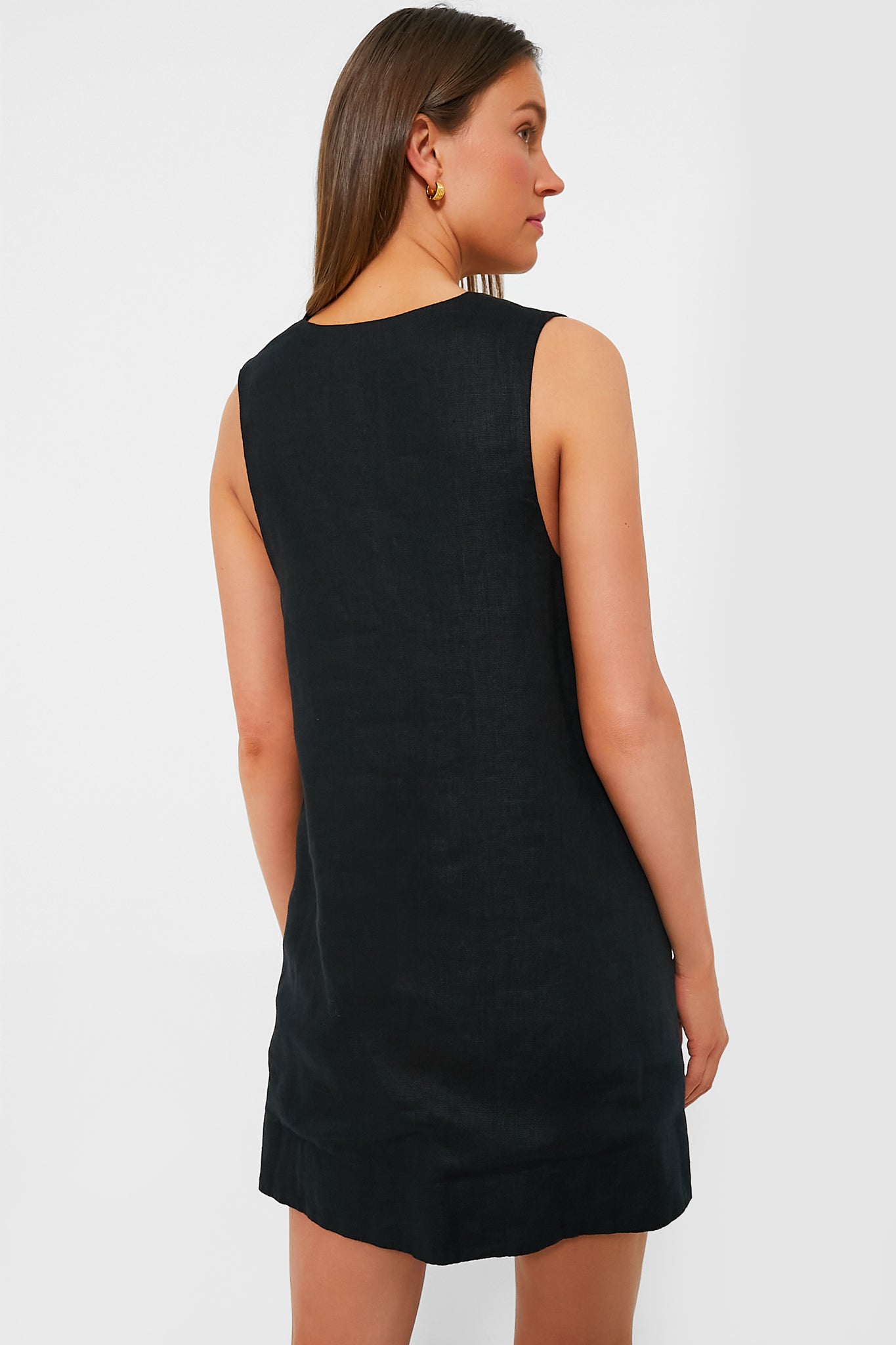 The Black Nancy Mini Dress is a fun and flirty dress to wear on those days where linen is a MUST! Featuring a V-neckline. center button closure. and A-line silhouette. this number will keep you looking stylish without having to touch you. a perfect two-in-one. Pair with a pop of color flat and sunnies for brunch with the girls or add a ball cap and sneakers for a casual look to the farmers market.