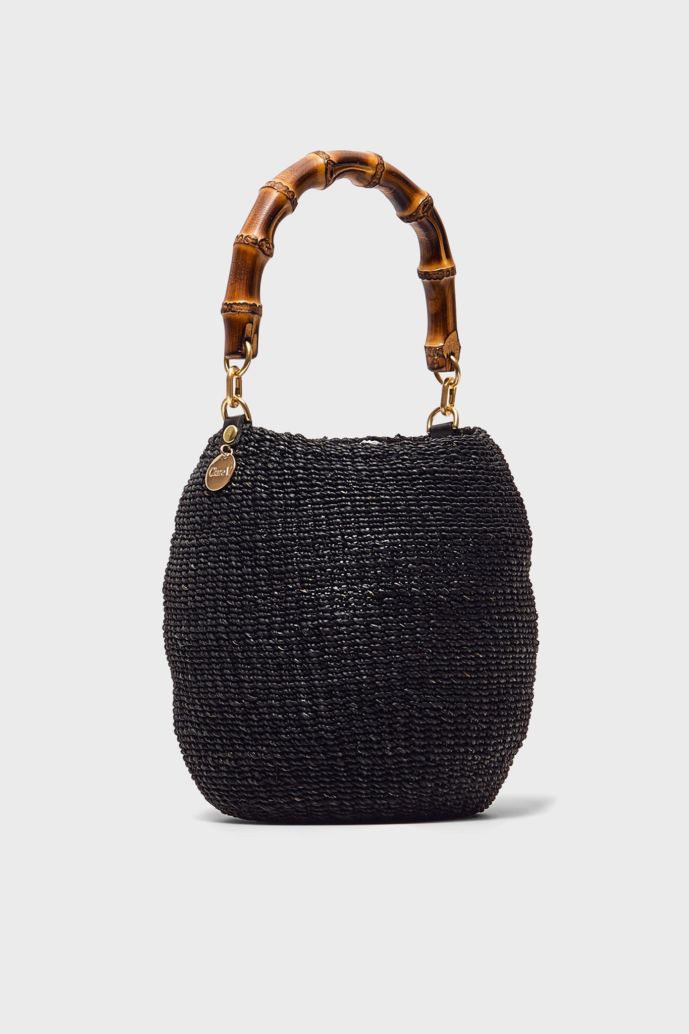 A fan-favorite back again with a fresh new update. this Pot de Miel Bag is a chic accent to warm-weather looks this season. A stunning bamboo handle makes it easy to carry in hand or on the forearm and adds a little edge. while a black colorway ensures it pairs well with everything from basic tees to bold printed dresses. Tie a scarf around the handle if you need a little extra mood boost. or carry it around as is — either way. you can't go wrong when you're toting your essentials around in style like this!