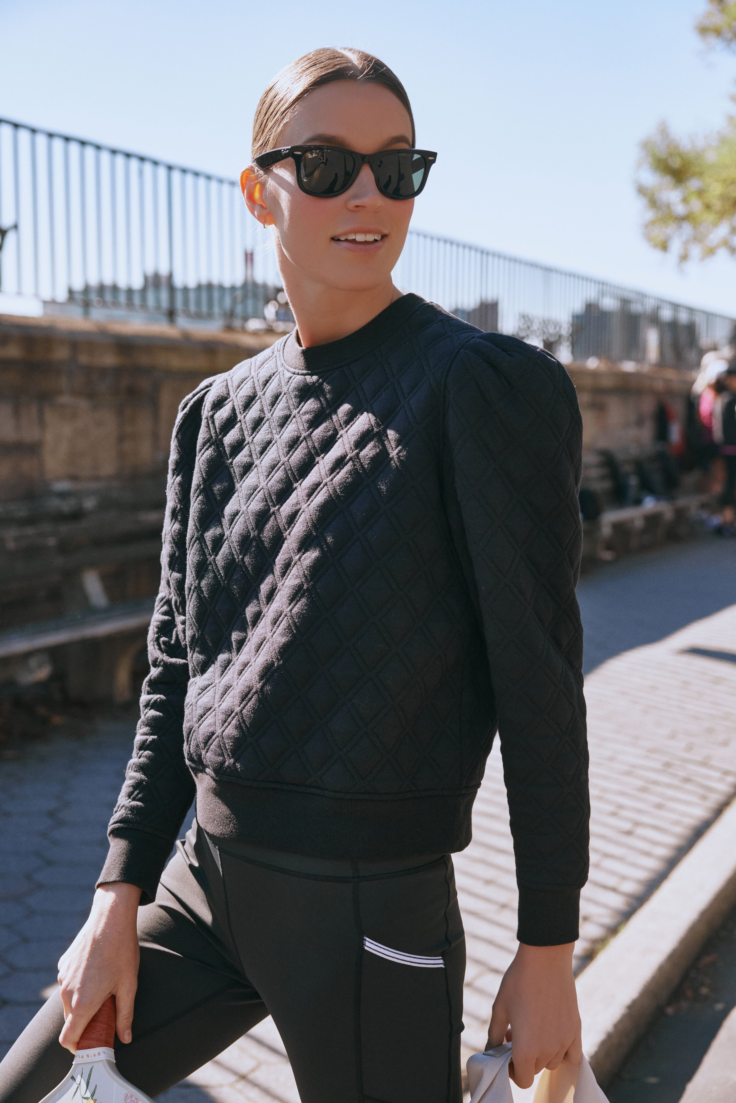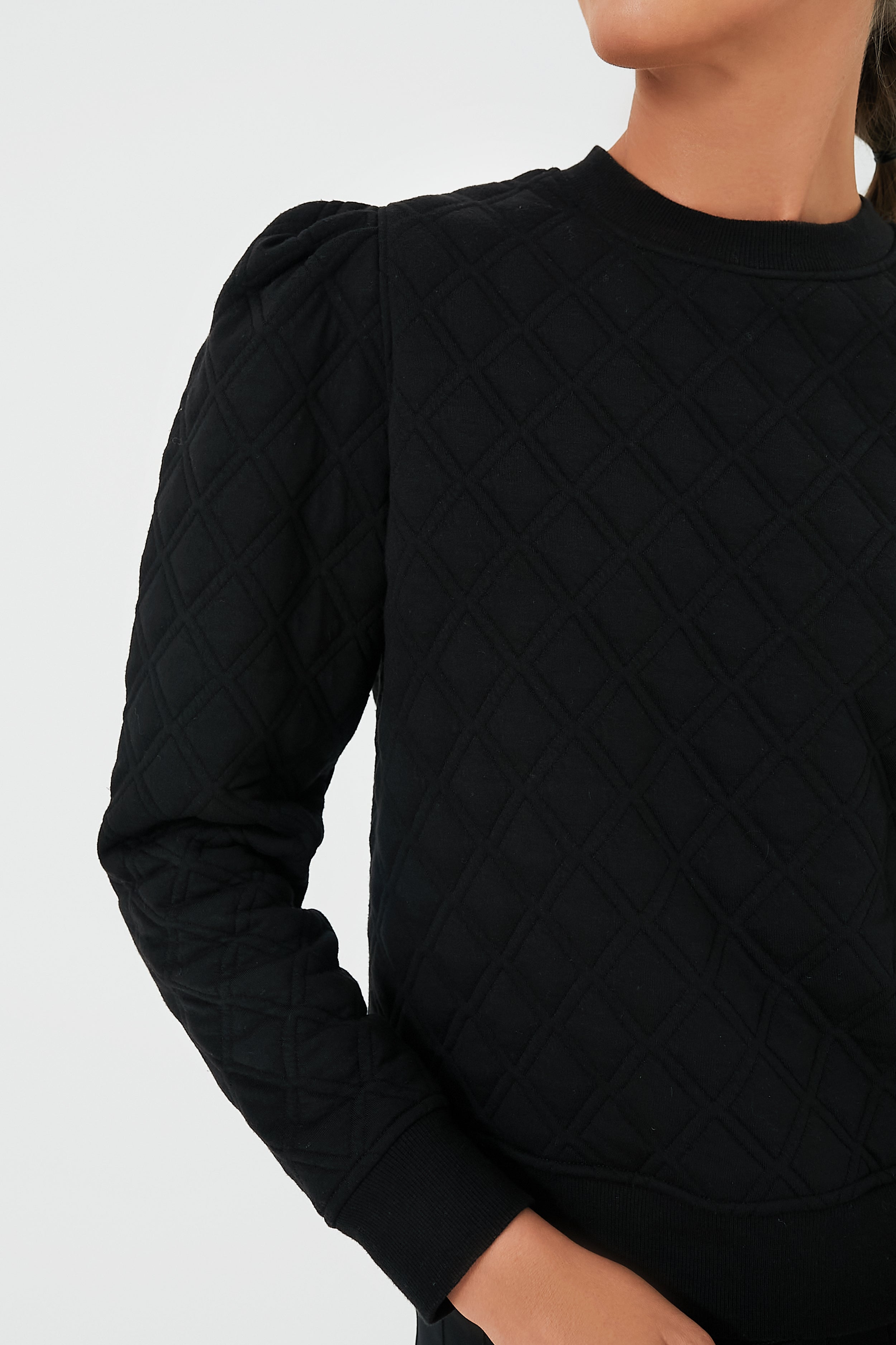 Fashion and function meet in the Puff Sleeve Campbell Pullover. This sweatshirts features feminine sleeves. a diamond quilted construction. and rib trim. Made in a soft-to-the-touch fabric that has quick-dry properties and SPF protection. you will want to wear this from your morning coffee to a chilly warm-up on the courts.