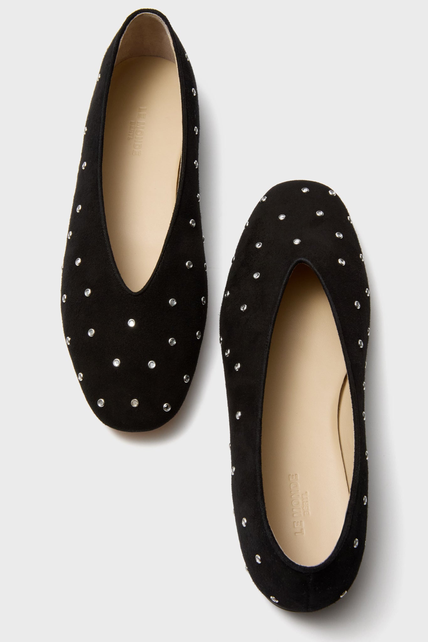 The Black Regency Studded Crystal Slippers are the epitome of effortless elegance. Featuring a rounded toe. a comfortable and cushioned calf leather insole. and a luxe suede composition. these are a lovely pair of flats to wear from desk to drinks and everywhere in between. Classic and feminine with a touch of edge. these shoes pair well with jeans and a cardigan or a blouse and skirt for an easy yet chic day-to-night option.