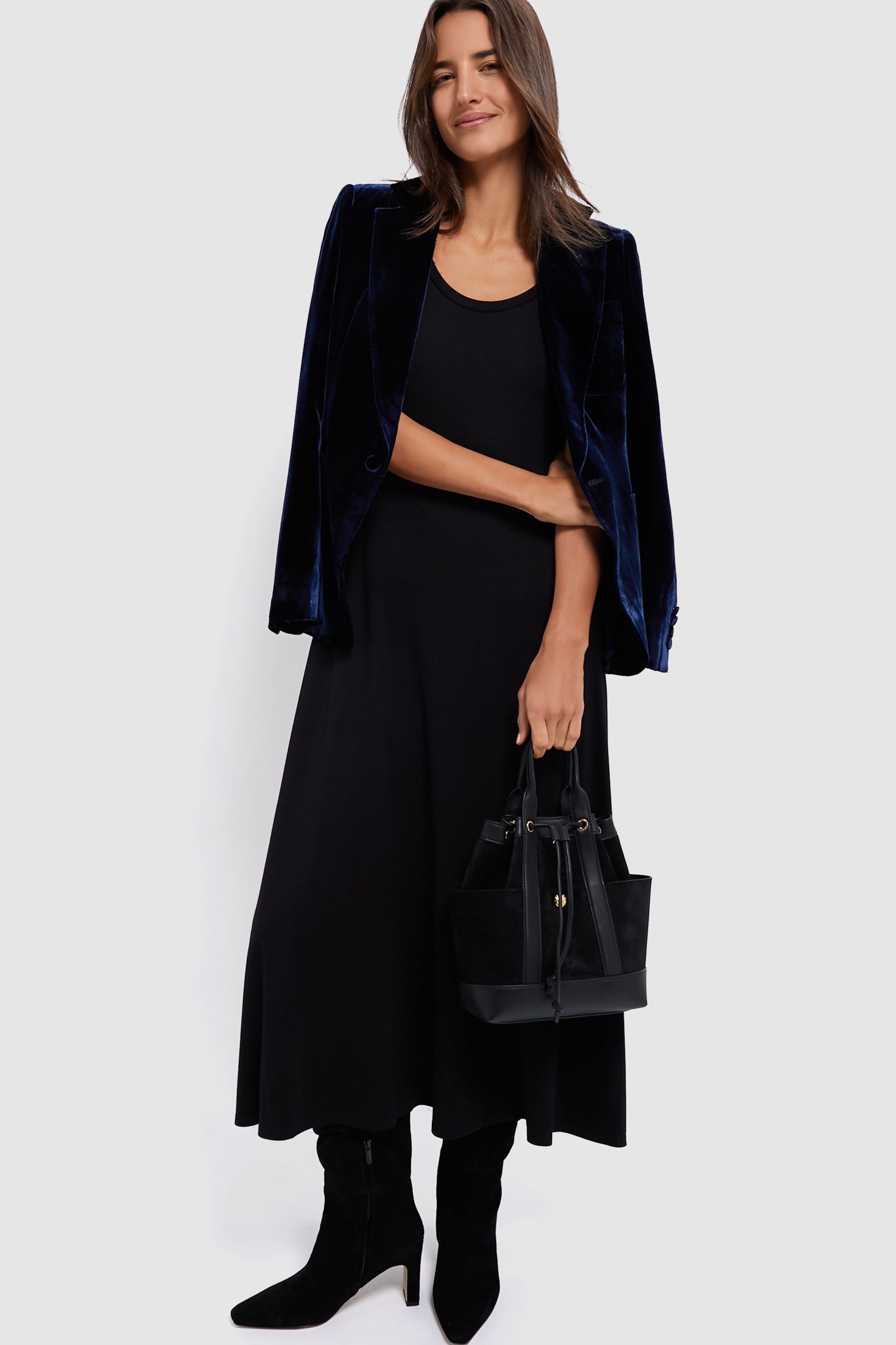 Designed to dress up or down all year long. the Black Sara Maxi is an easy knit dress with long sleeves and a flattering fit-and-flare silhouette. Pair with heels. boots. sneakers. or flats- the options are endless!