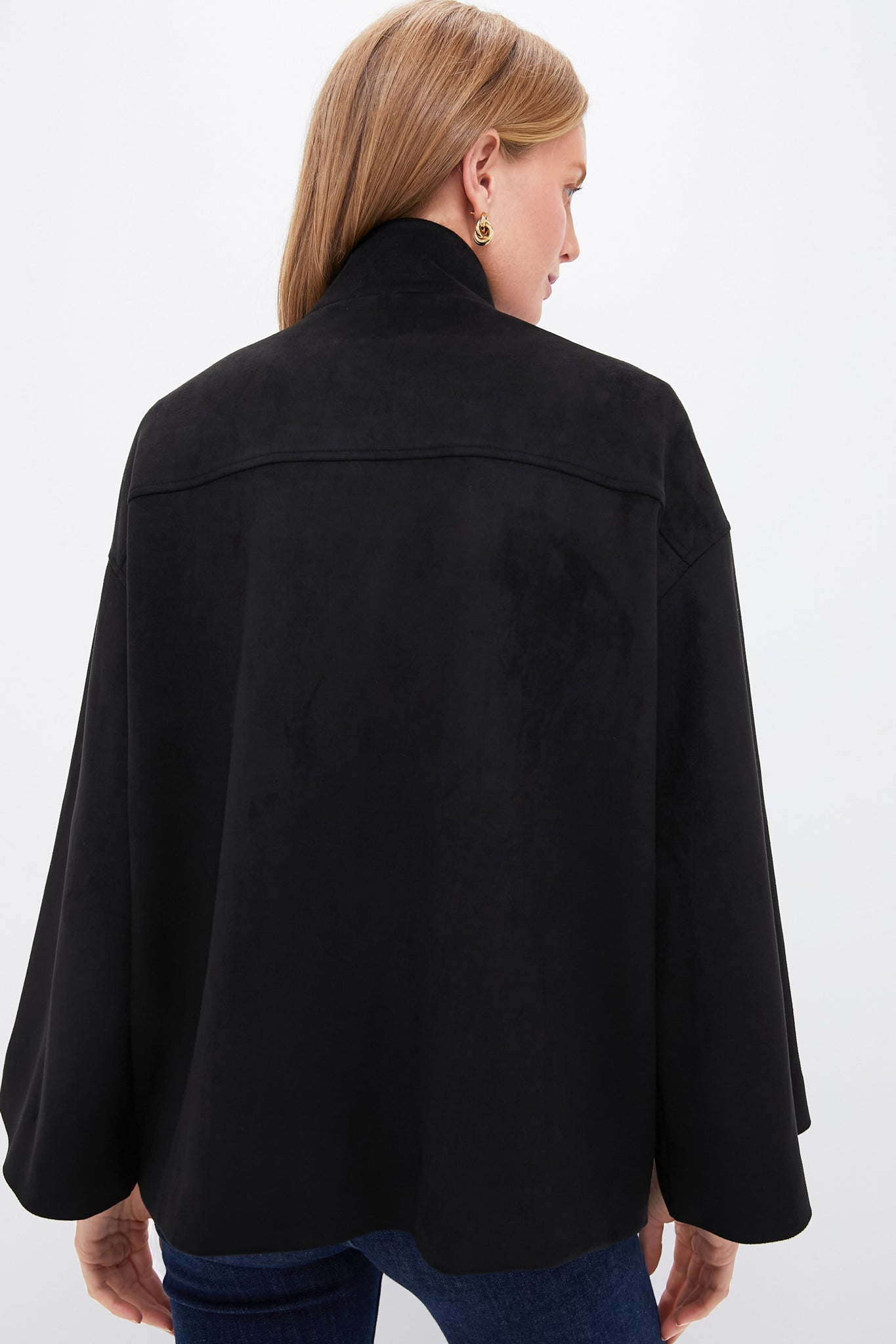 The Black Suede Fringe Marant Shirt Jacket boats a playful swinging fringe trim on the front that we just can't get enough of. With a high collar. snap buttons and a relaxed fit. this minimalist and luxurious layer pairs nicely with denim. boots. and a tote for an always-chic look.