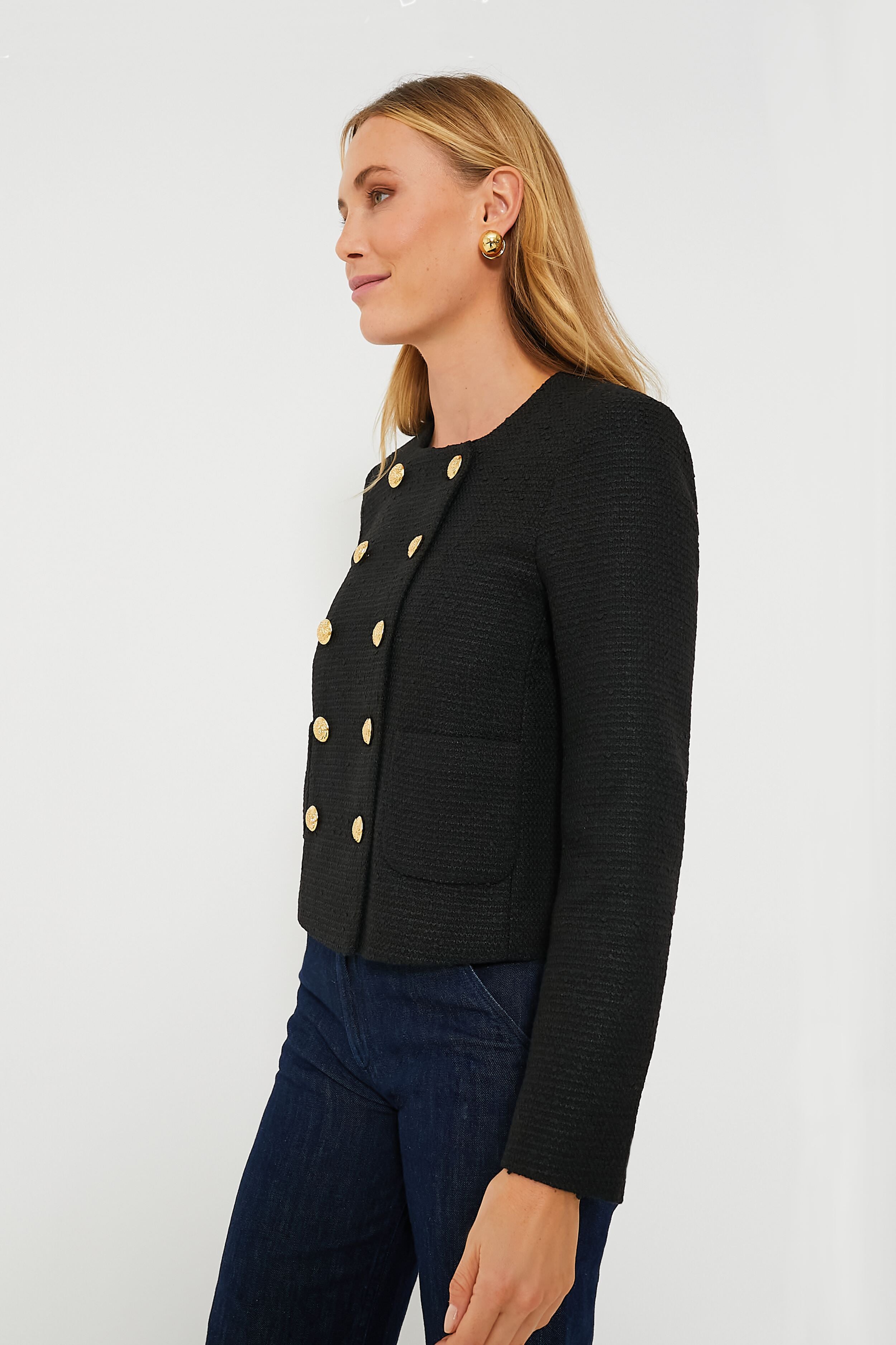 Power-dressing is our favorite trend lately — and the Black Marais is the best way to do it. Elegant and timeless. this slightly cropped lady jacket silhouette features thin shoulder pads that provide subtle structure. functional shiny gold buttons. and a sophisticated tweed fabric with some texture. A perfectly versatile addition to your closet. pair with denim and flats for a polished daytime look. or a mini skirt and heels for evening events.