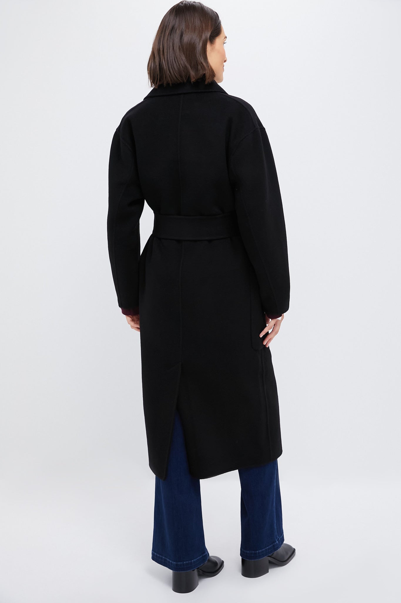 Crafted from a luxurious wool fabric. the Trinity Coat has us craving cold weather days. With statement lapel collar. functional front pockets. and a self-tie belt for a look that's equally fashionable as it is functional — style with go-to denim and sleek boots for an effortlessly chic outfit formula.