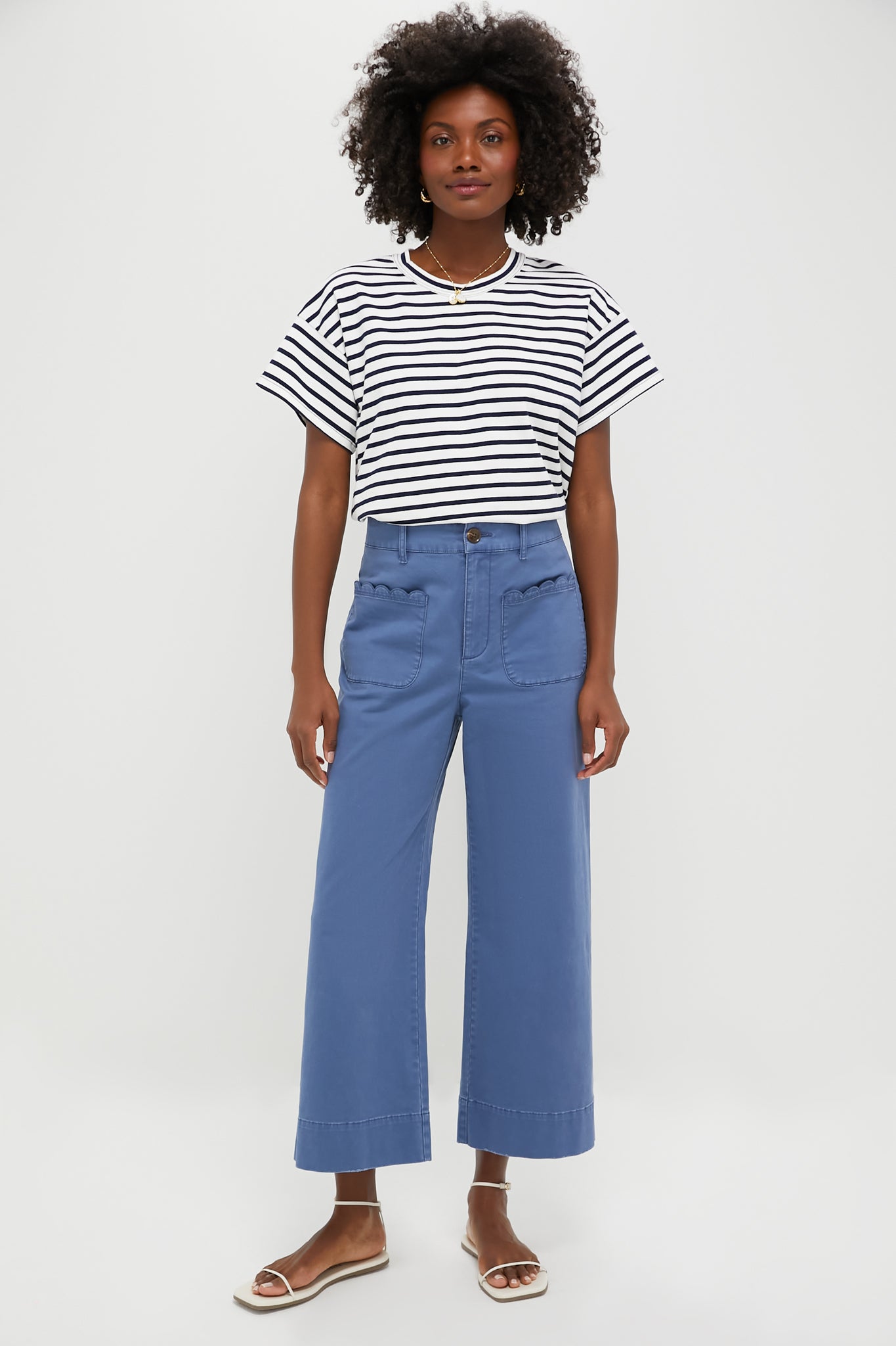 Perfect for casual weekends filled with game day tailgates and farmers market hangouts. introducing the Davis Pant. Featuring scalloped pocket detailing and a wide leg silhouette these pants are comfortable and chic! We recommend pairing with a crisp polo or sweater. ballet flats. and a crossbody!
