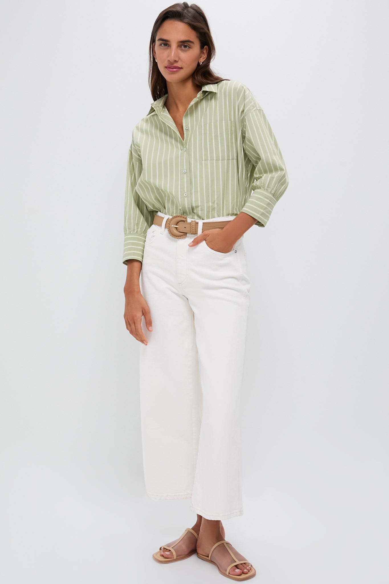 The Bone Juliette Wideleg Ankle is designed with a flattering high rise waist and fitted cut through the hips. Cut in a supersoft drapey non-stretch denim with a slim wide-leg silhouette and classic white makes them endlessly versatile. Pair with a tee. flats. and a bucket bag!