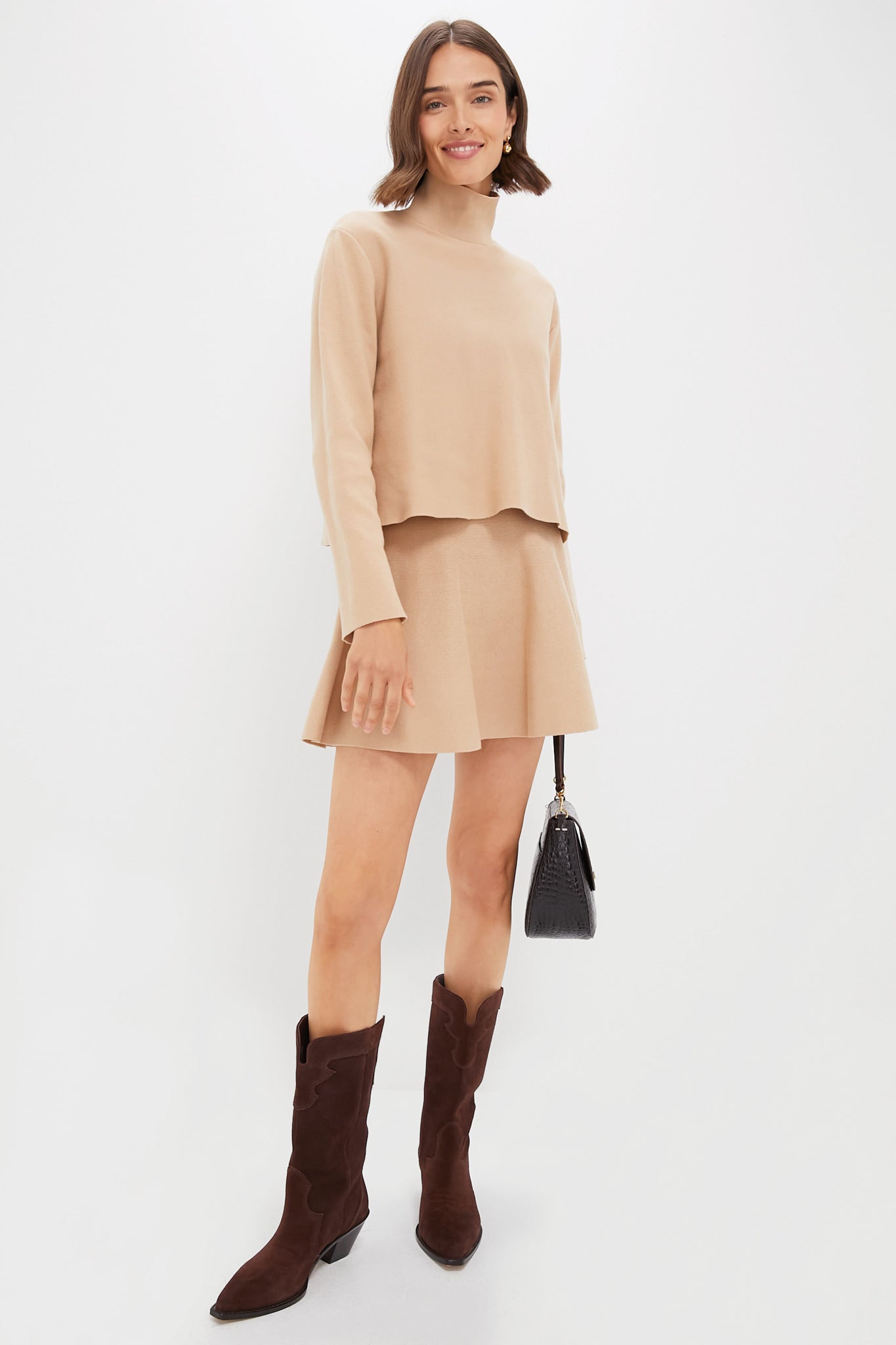 The Camel Knit Cate Skirt is a fully fashioned knit that balances contemporary femininity with timeless sophistication. Featuring a ribbed waistband and a flared skirt. this piece is finished with a clean cast-off hemline for a refined finish. Pair with the matching Camel Knit Kimberly Sweater or elevated wardrobe essentials for tran-seasonal styling.