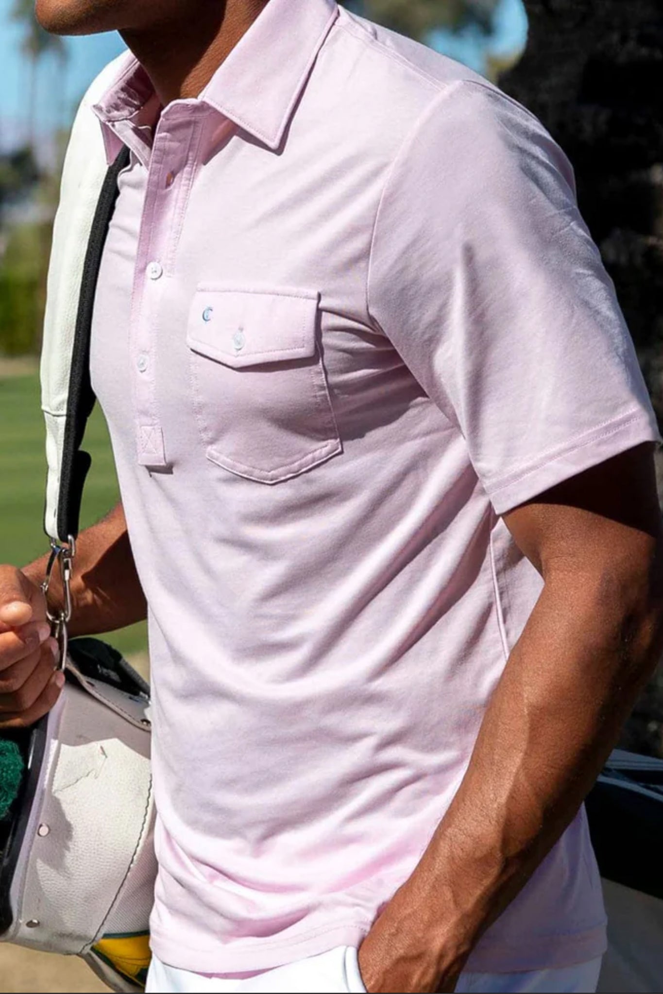 Fresh and new in a pale pink hue. we are loving the Cherry Blossom Performance Players Shirt. There is really nothing better than a polo that looks sleek (hello. classic collar with removable collar stays). but is actually super low-fuss and made from an easy care fabric that stays wrinkle-free all day long. From the golf course to backyard barbecues. this is an essential summer style.